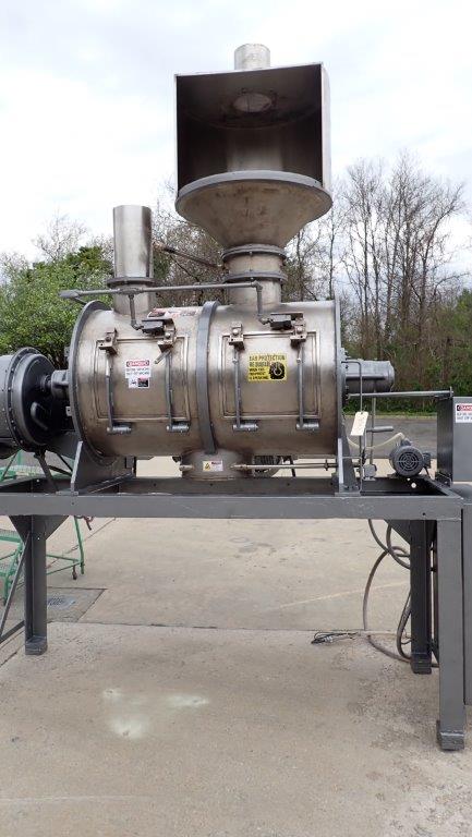 1-Used Littleford Model FKM-600-D Stainless Steel Plow Mixer, Serial Number 36713-1323.  This 21.9 cubic foot mixer is driven by 20 HP, 3/60/230-460 Volt motor and is equipped with two high-speed chopper assemblies, each independently driven by 10 HP motors.  With 1/2 HP motorized liquid pump for the liquid injection jets, mixer is on stand and equipped with center bottom outlet with plug style valve. With self-contained starter box with controls for mixing plows and choppers. Equipped with Stainless Steel removable hopper as shown in photos. (Stock #8742)