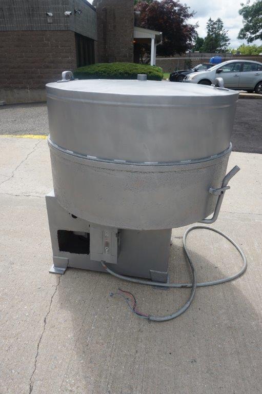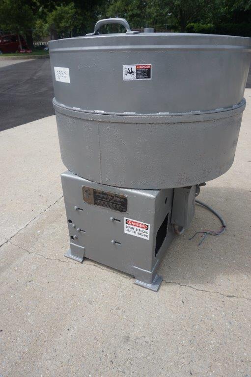 1-Used Simpson Model 05 “Mix-Muller” Batch Mixer, S/N E-7808007. Capable of mixing batch sizes up to 3 Cu. Ft., Mixer has approx. 39 In. Diameter bowl. Equipped with approx. 15 In. X 3 In. wheels for mixing, unit has bottom outlet with plug valve and electric drive motor. (Stock #8530)