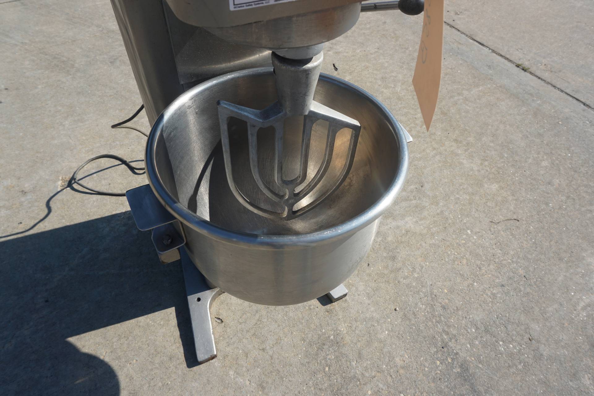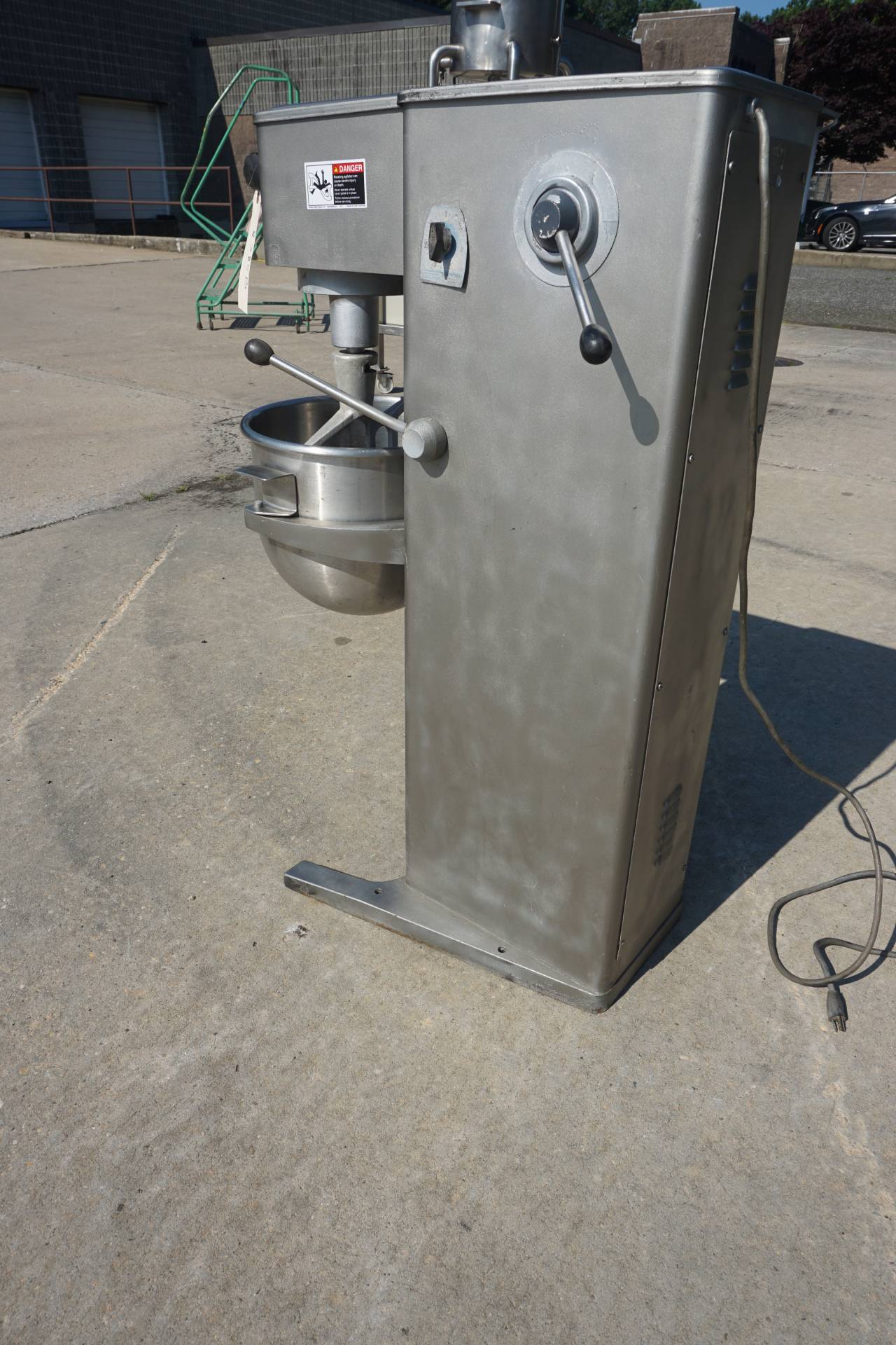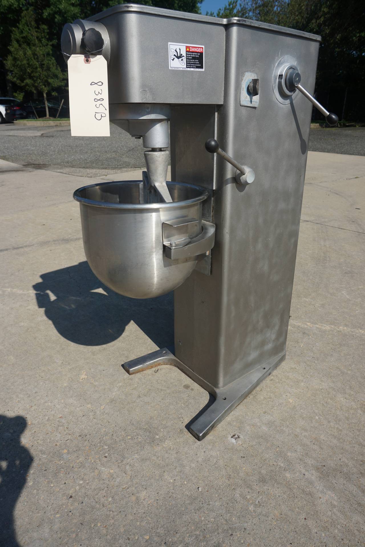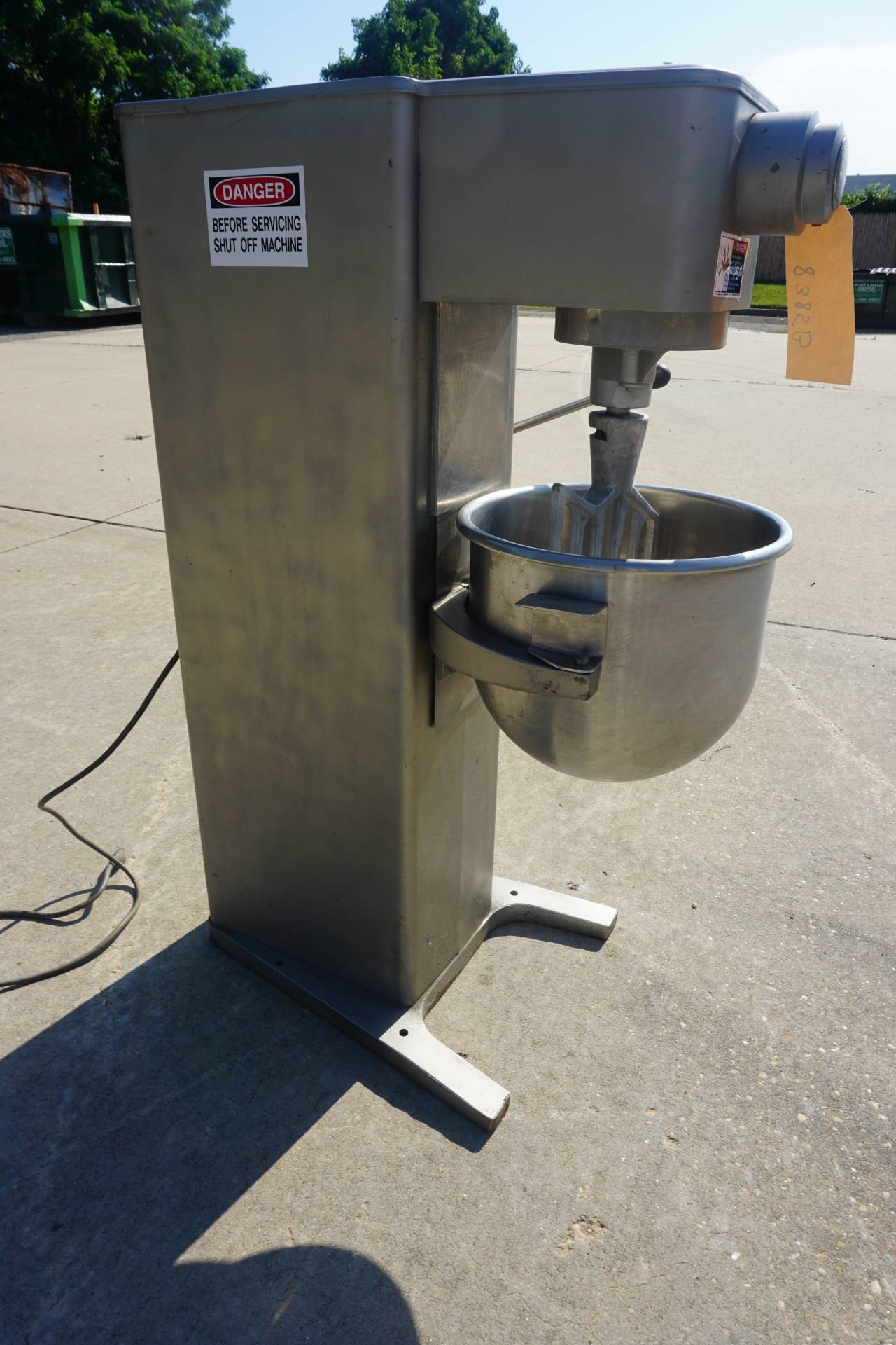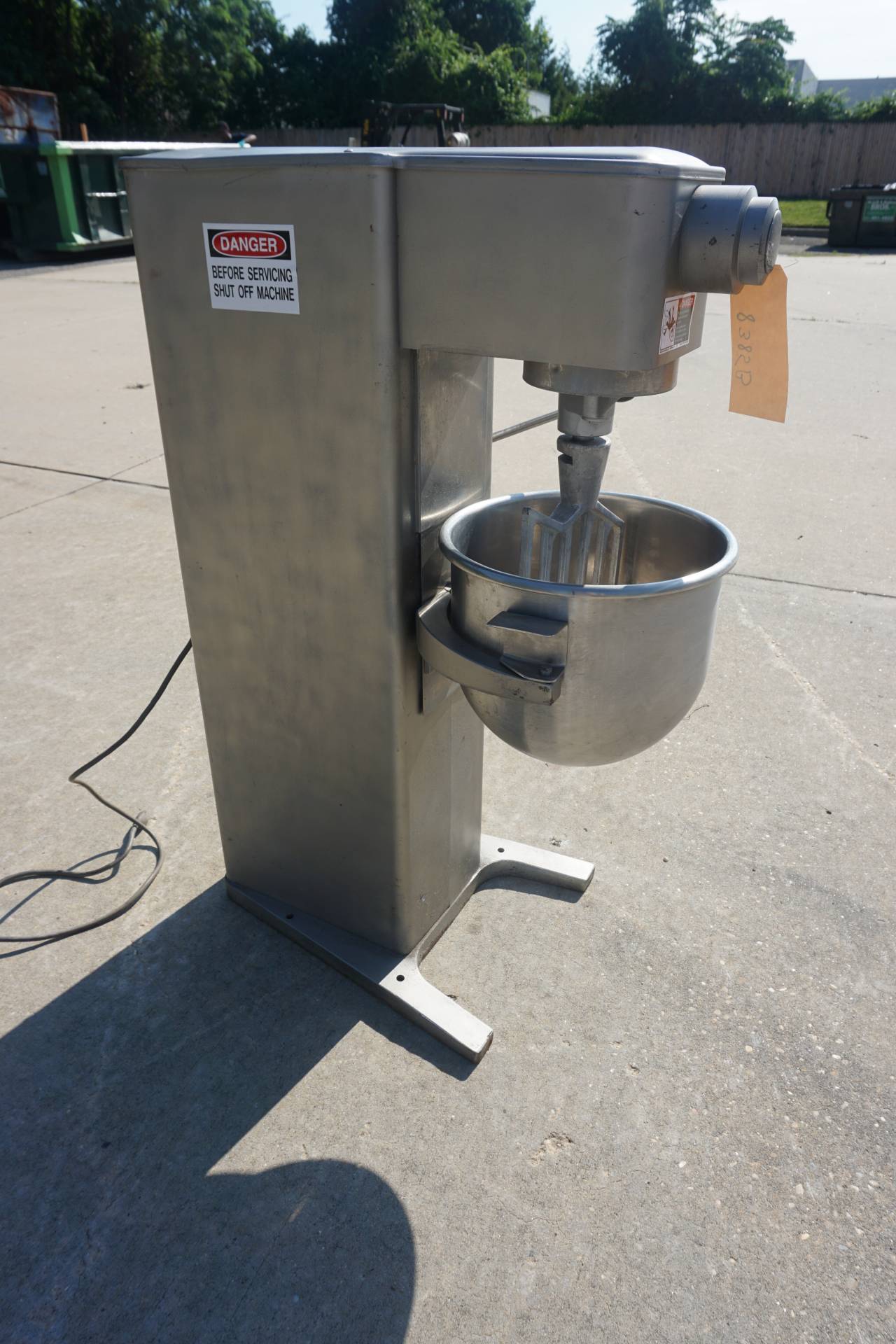 1-Used Univex 20 Quart Bowl Mixer, Model MF-20. Equipped with variable speed operation, machine has flat beater mixing attachment and approx. 13 In. diameter X 12 In. deep stainless steel bowl. (Stock #8385B)