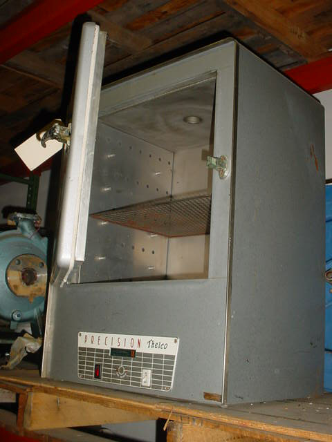 1-USED THELCO MODEL 18 SINGLE DOOR ELECTRIC OVEN. APPROXIMATE DIMENSIONS 14" X 18" X 18".