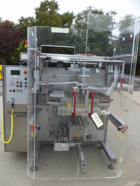 1-Used Klockner “Medipak” Type LA500 High Speed Sachet Machine, Machine #062. The LA500 is suitable for sachet/pouch packaging. When equipped with the appropriate filler, machine packages powders, granules, liquids, food products, capsules, tablets and many other items for the pharmaceutical, nutritional supplement, cosmetic and food industry. Last used for the packaging of oral dissolving strips, machine has electrical specifications of 3/60/208 volt. Overall material feed width up to 500 mm – Suitable for bag widths from 50mm to 125mm and bag length from 50mm to 160mm. Designed for 70 cycles per minute (approx. 420 units per minute at 6-up). Equipped with Manuals including schematics, documentation, etc. (Stock # 7835)