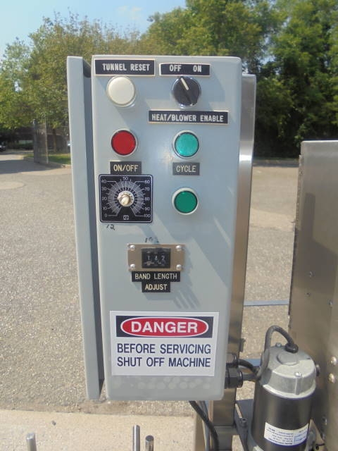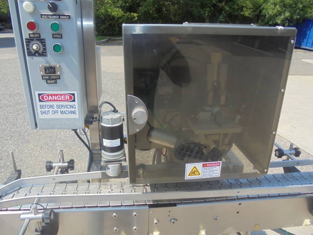 Marburg Conveyorized Neck Bander With Shrink Tunnel, Variable Speed