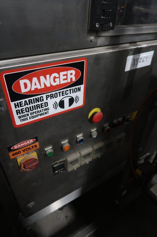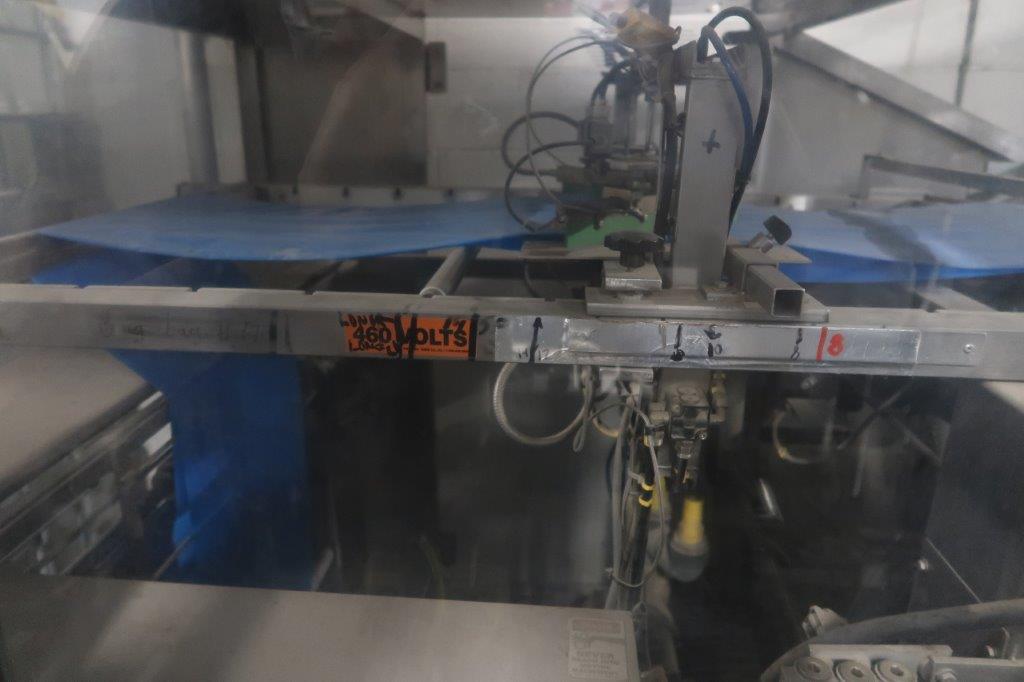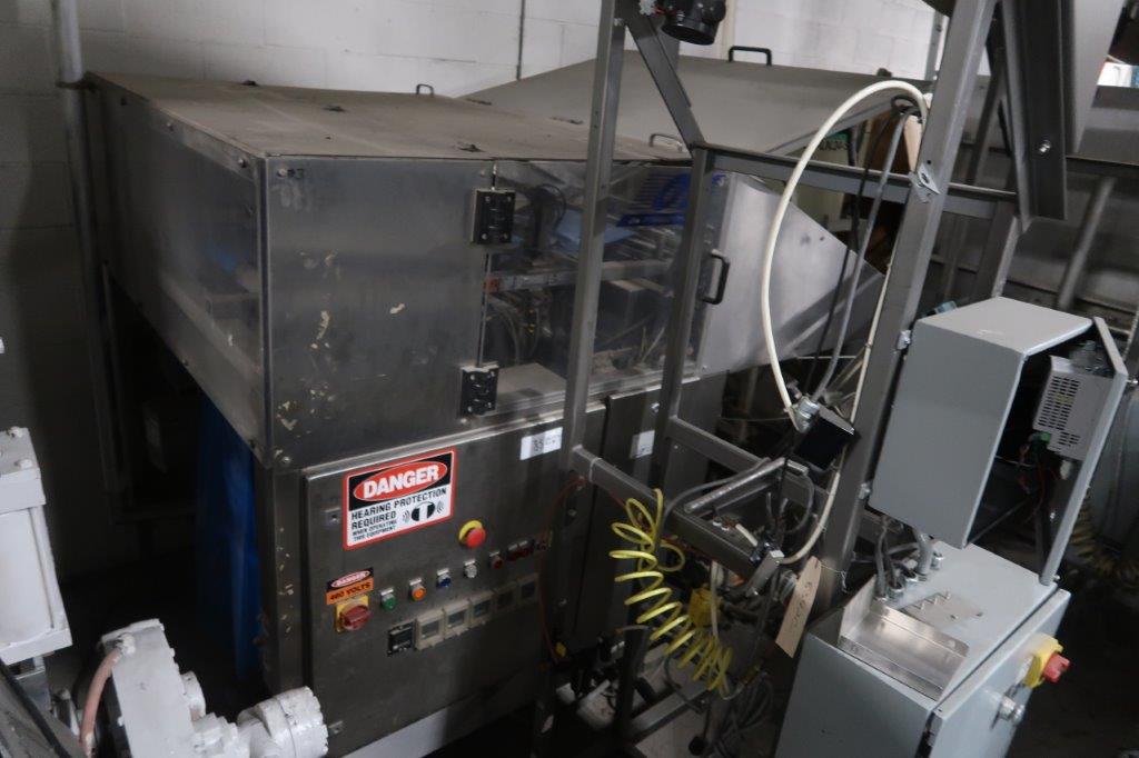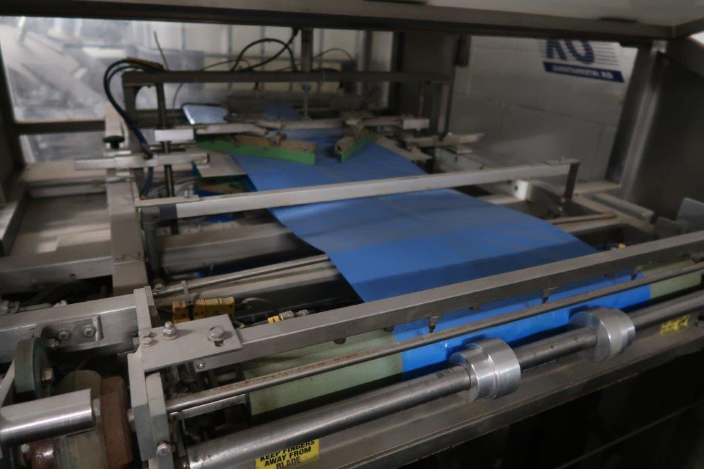 1-Used OK Corp. Model OK-200 Polybag-In-Box Maker and Bag Inserter, S/N 98-1018. Machine makes bags form a roll of plastic, places the bag into a case and is equipped with infeed and discharge conveyors. Electrical specifications 3/60/460 Volt. Rated up to approximately 24 cases per minute. (Stock #8526Y)