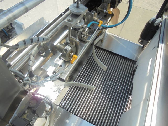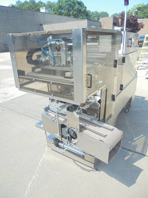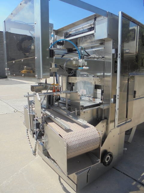 1-Used Polypack Model Gryphon 150 Stainless Steel Automatic Shrink Bundling System, S/N 3073. On casters for portability, machine has 9 in. wide infeed with plastic conveyor chain and Shrink Tunnel with opening of approx. 19 in. wide X 10-1/4 in. high. With Directlogic 205 PLC, machine last used in pharmaceutical industry. (Stock #8110A)