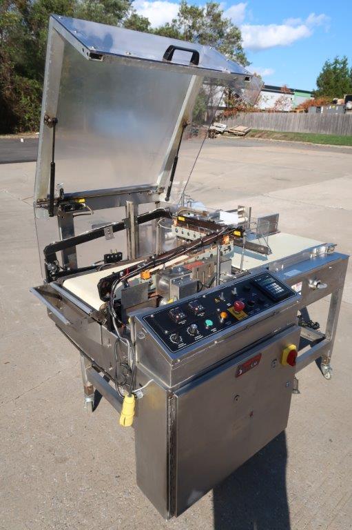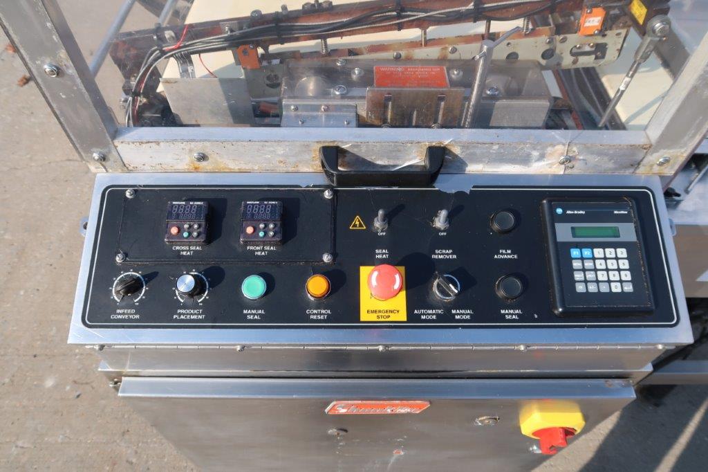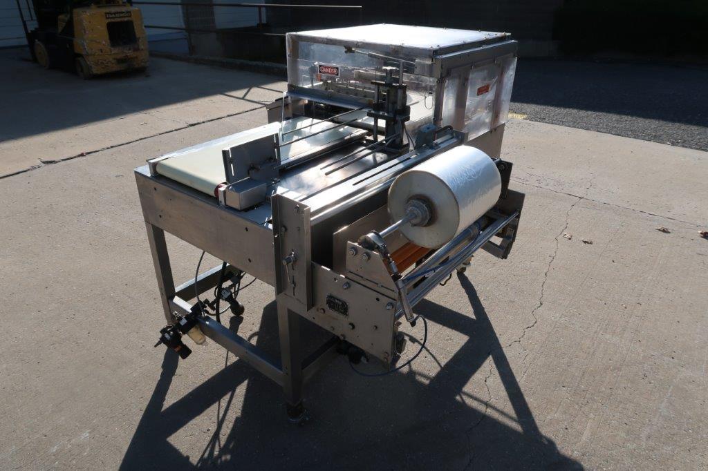 1-Used Shanklin Model A26ADA Stainless Steel Automatic L-Sealer, Serial Number A97108.  Equipped with 13 In. wide takeaway belt, machine has self-container control panel with temperature gauges and speed controls.  Rated up to 25 packages per minute, this stainless machine is on casters for portability, and has Allen-Bradley Microview controller.  Last used in a food environment, electrical specifications single phase, 60 cycle, 230 Volt.  Machine can be supplied with accessory shrink tunnel at additional cost. (Stock #8696E)