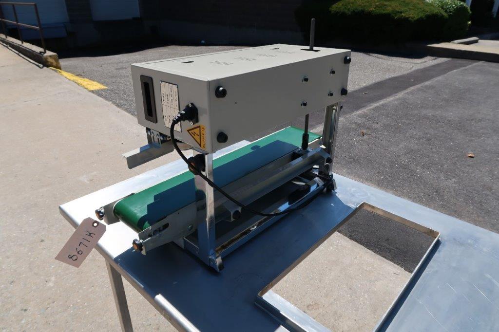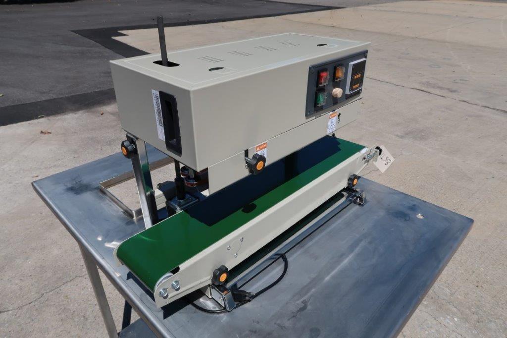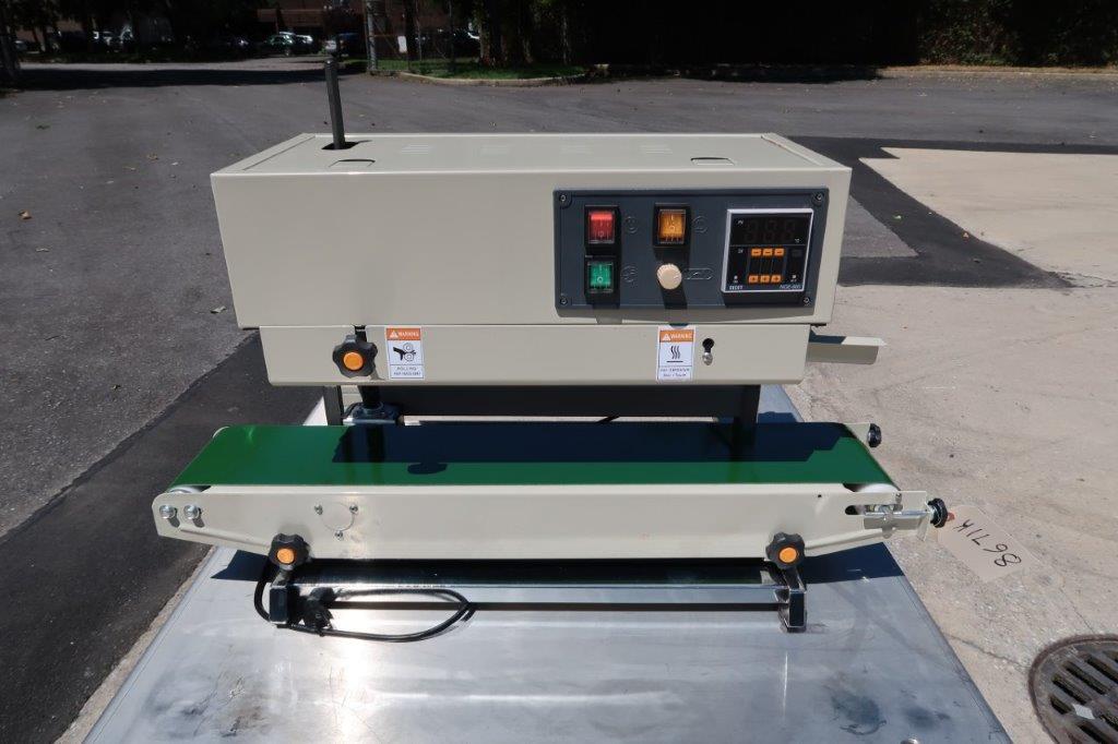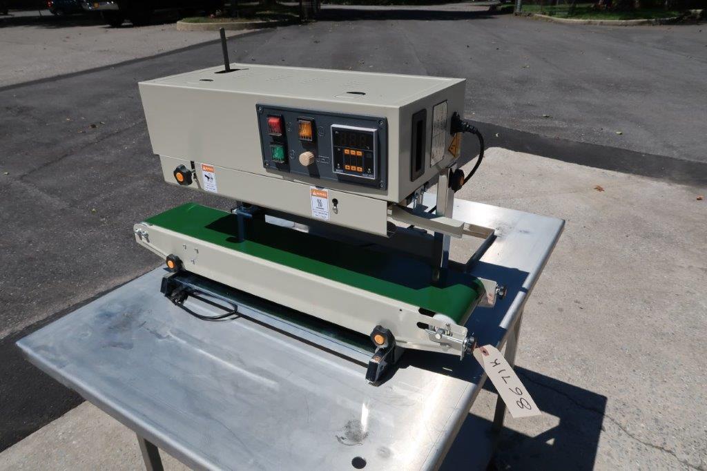 1 – Used Tabletop/Lab Size Bag Sealer, Model # FR-900, Manufactured 2021. Bag sealer is equipped with approx. 5.5 In. wide conveyor and aiset NGE-600 digital control panel. Electric specifications; single phase, 110 Volt, 50-60HZ. Stainless steel table shown in the photo is available at an additional cost. (Stock # 8671K)