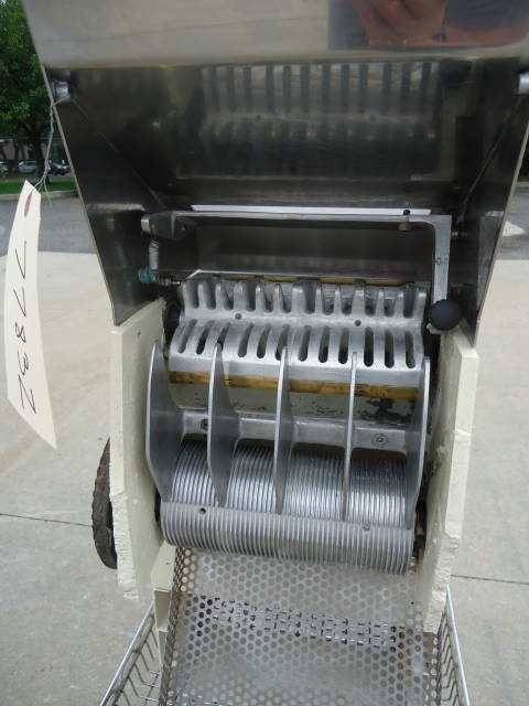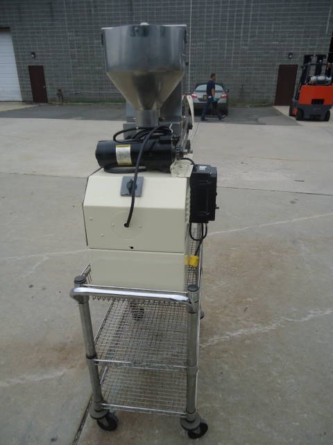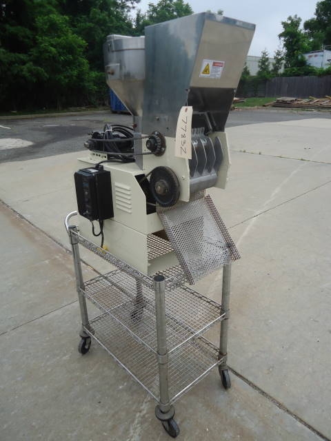 1-USED GNOCCHI TABLETOP MACHINE EQUIPPED WITH STAINLESS STEEL AGITATED HOPPER.  ELECTRICAL SPECIFICATIONS:   3 PHASE, 60 CYCLE. 208 VOLT WITH VARIABLE SPEED CONTROL.    TABLE SHOWN IN PHOTOGRAPHS NOT INCLUDED.  (STOCK  #7783Z)