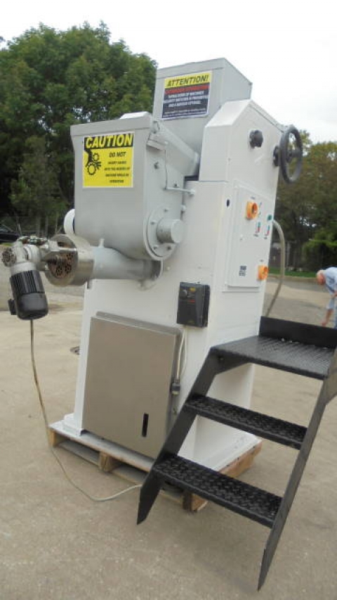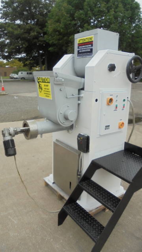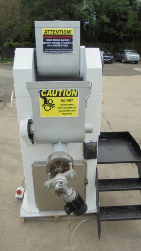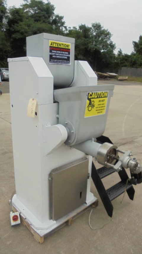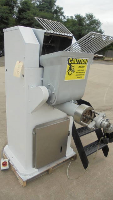 1-Used La Parmigiana Model D80N Pasta Extruder. Rated up to 80 kg. per hour (approx. 175 pounds per hour), Extruder has two (2) stainless steel kneading hoppers measuring approx. 13 in. wide X 15 in. long X 19 in. deep (top hopper) and bottom hopper measuring approx. 13 in. wide X 16 in. long X 18 in. deep. Each with hinged safety grates. Equipped with motorized cutting head, this Extruder is supplied with miscellaneous Dies for different pasta shapes. (Stock # 8223B)