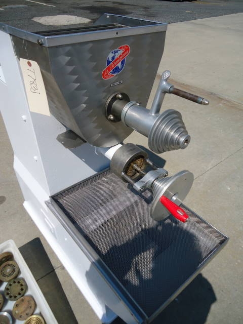 1-USED LA PARMIGIANA PASTA MIXER/EXTRUDER.  MACHINE HAS TOP MOUNTED MIXER WITH SAFETY GRATE AND CAN BE SUPPLIED WITH ASSORTED DIES.  ON CASTERS FOR PORTABILITY.  FURTHER INFORMATION AVAILABLE UPON REQUEST. (STOCK# 7783J)