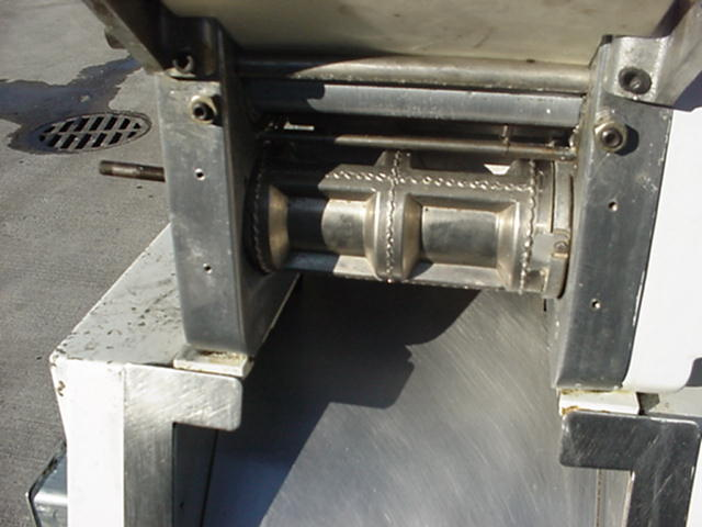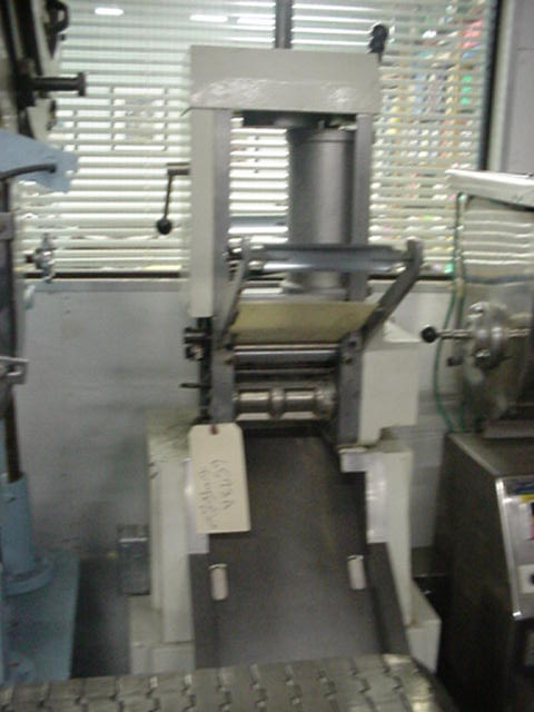 1-USED TORESANI APPROX. 150MM RAVIOLI MACHINE. THIS DOUBLE ROLL (DOUBLE SHEET) RAVIOLI MACHINE IS SUPPLIED WITH (2) DIES; A 2-UP RAVIOLI DIE, APPROX. 2" X 2" AND SECOND DIE IS A 3-UP RAVIOLI DIE, APPROX. 1-1/2" X 1-1/2". WITH STAINLESS STEEL FILLING CANNISTER, MACHINE IS ON CASTERS.