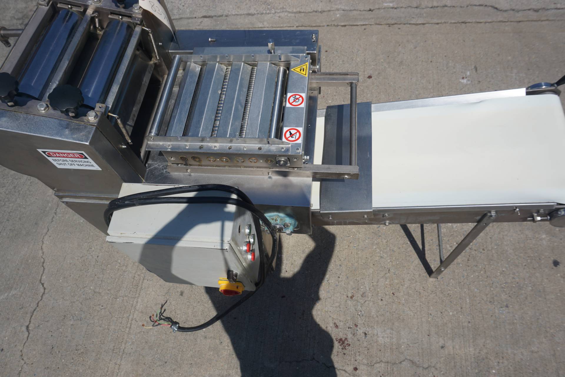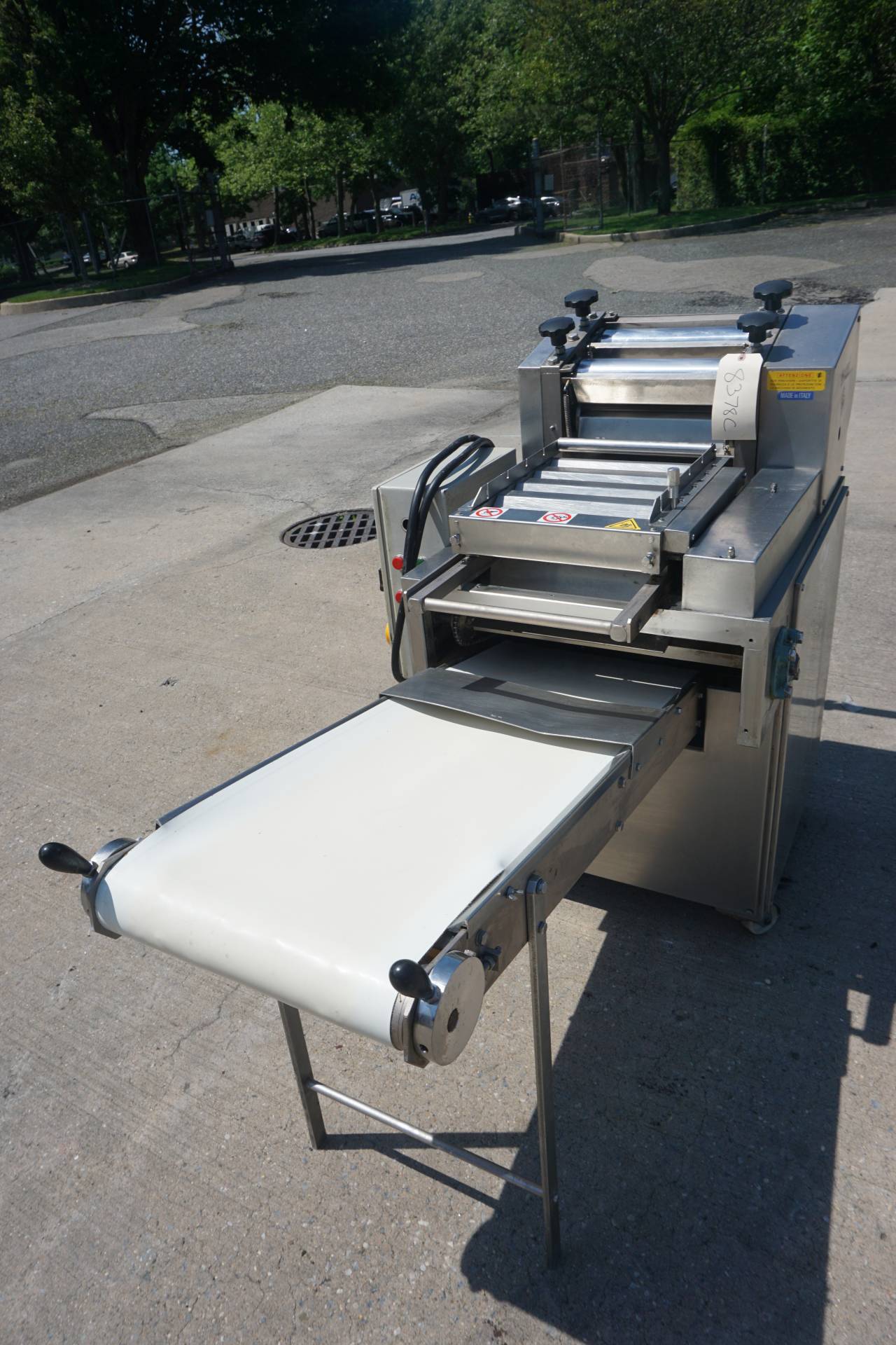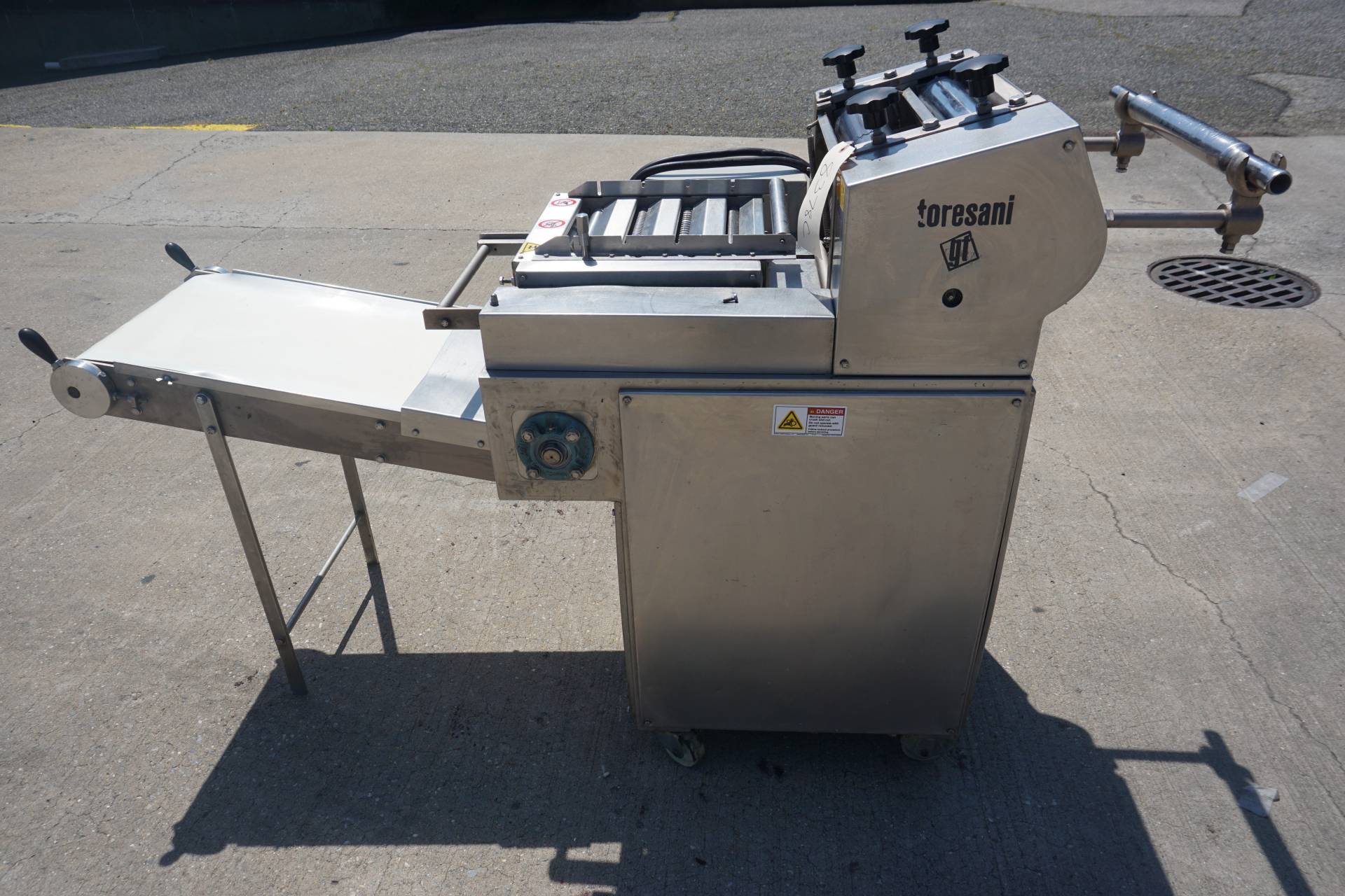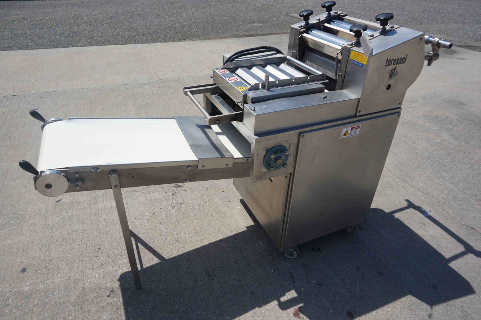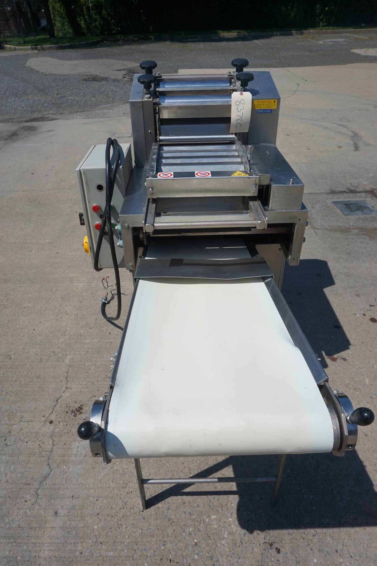 1-Used Toresani Model CISF-300A Pasta Sheeter/Cutter. Rated up to approx. 150 kilos per hour, sheet width is 300mm. With belt-style takeaway conveyor, electrical specifications 3 phase, 220 Volt. Suitable for producing pasta like spaghetti, tagliatelle, etc. (Stock #8378C)