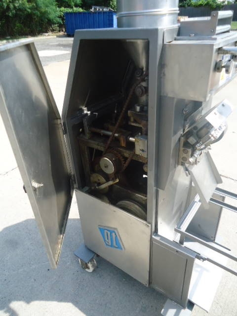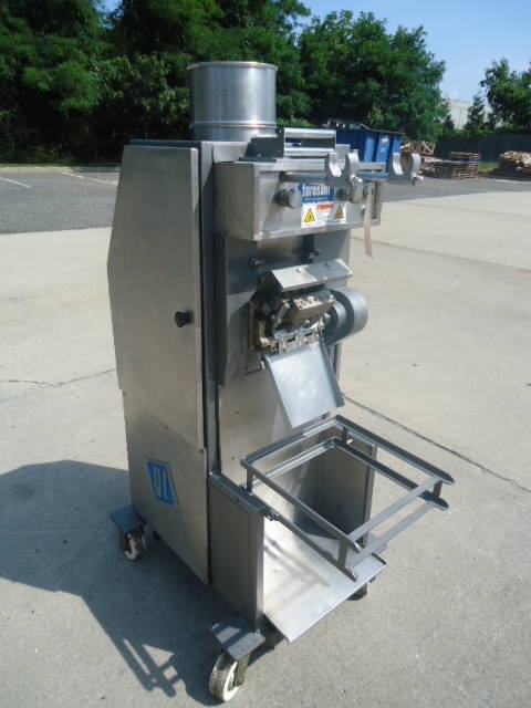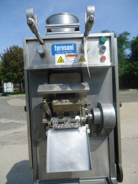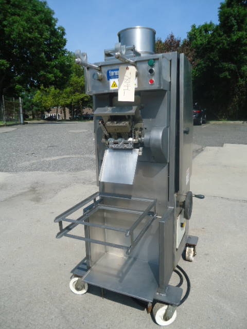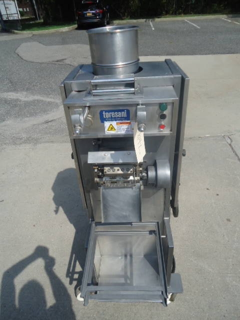 1-Used Toresani filled pasta machine.  On casters for portability, machine has top mounted hopper and 3/60/220Volt electrics. (Stock# 7814L)