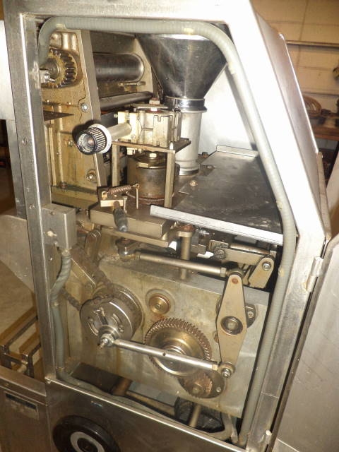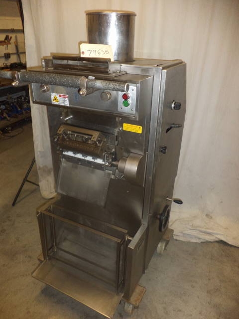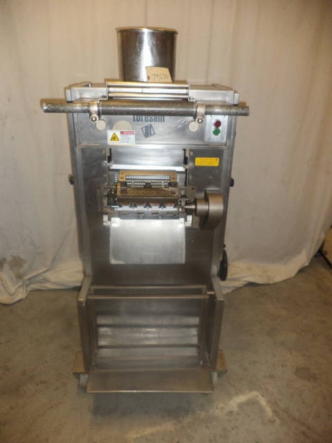 1-Used Toresani MR-265 4 Punch Tortellini Machine, S/N 907702. With stainless steel cabinetry, Machine on casters for portability. Has top mounted approx. 10 in. diameter hopper for cheese. With starter box. Electrics: 3 phase, 60 cycle, 220 volt. (Stock #7965B)