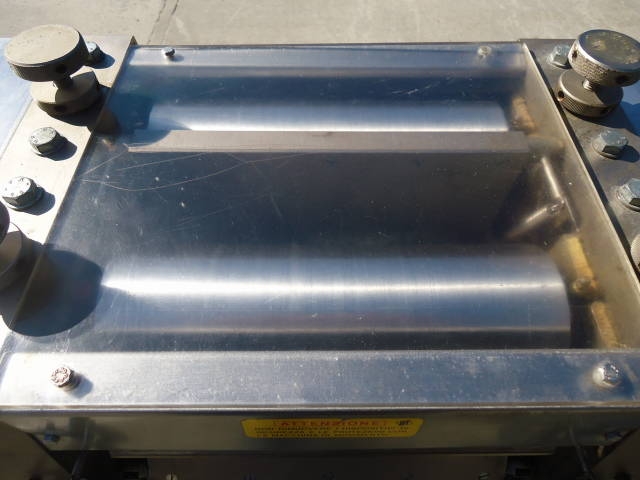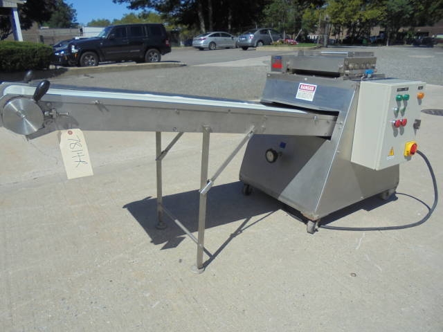 1-Pre-Owned Toresani Pasta Sheeting & Cutting Line. Line consists of Toresani Model LDC-300 Fine Pasta Sheeter Type 90/32010. On casters for portability. Electrical specifications 3/60/220 volt. With “Push Button” Starter Box. Also consists of Toresani Model TCT-350 Stainless Steel Pasta Cutter Type 89/2825. Equipped with approx. 16 in. wide white food grade belt. Cutter has approx. 55 in. long Take Away Conveyor and “Push Button” Starter Box. On casters for portability. Electrical specifications 3/60/220 volt. Requires top hopper. (Stock # 7814KR)