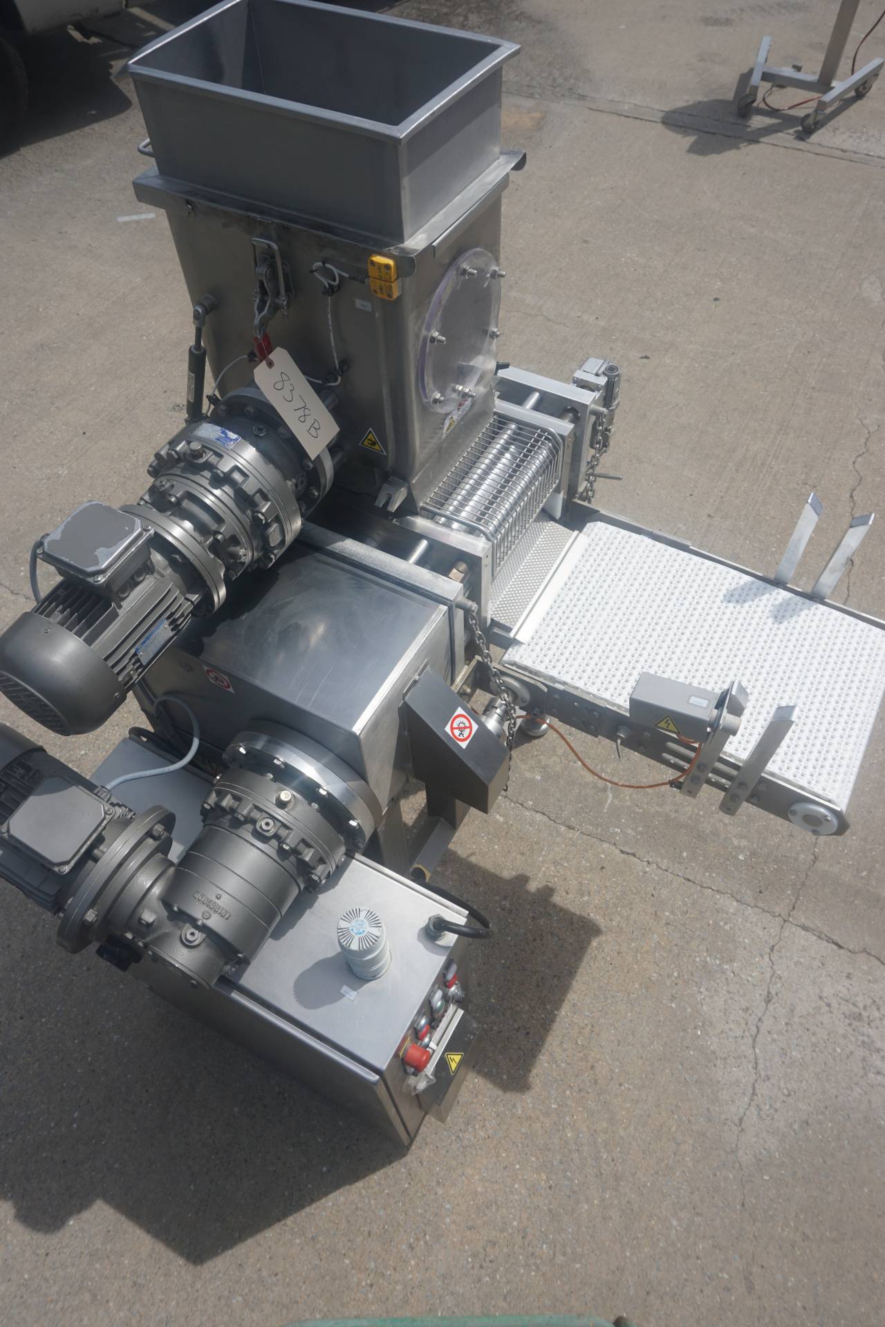 1-Used Toresani/Pavan Model SP300 Pasta Kneader/Sheeter, machine number F0162101, order number F0162000. Rated up to 300 kilos/hour, machine is for 300mm sheet width. With Stainless Steel construction, kneader motor is 1.5HP 3/60/220-380 Volt, and sheeter motor is 3HP 3/60/220-380 Volt. With side mounted control panel and self-contained take away conveyor. (Stock #8378B)