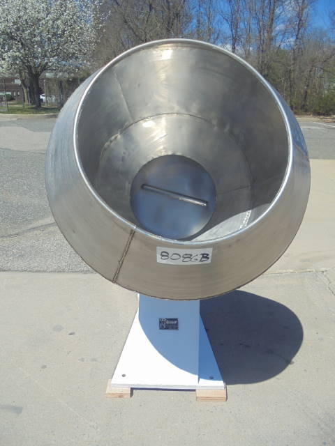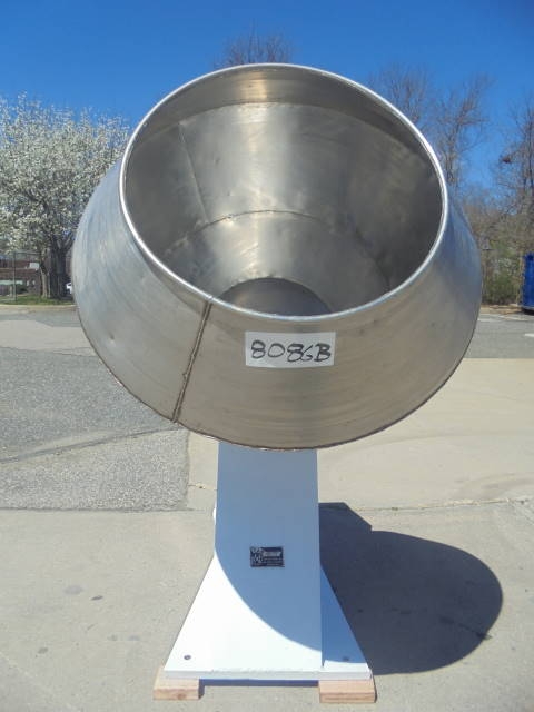 1- Used Approximately 36 In. Diameter Stainless Steel Coating Pan. On stand, Pan is driven by 1 HP 3/60/220-440 Volt electric motor. Last used in vitamin production.  (Stock #8086B)