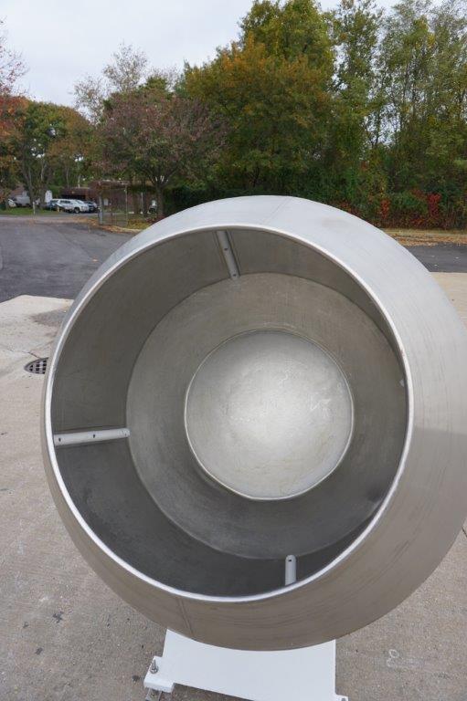 1-Used 42 In. Diameter Stainless Steel Coating Pan. Equipped with internal baffles, this Pan has two explosion proof motors, 3 phase electrics. Last used in the vitamin industry.  (Stock #8570B)