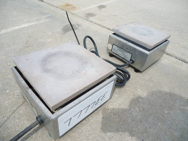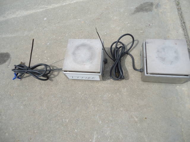 2- USED BARNSTEAD/THERMOLYNE MODEL HPA-1915B HOT PLATES, SERIAL NUMBERS 64951028323 AND 06423803.  ELECTRICAL SPECIFICATIONS SINGLE PHASE 50/60 CYCLE, 120VOLT.  PLATES MEASURE 6-1/4 INCH BY 6-1/4 INCH. WITH TEMPERATURE CONTROL.(STOCK# 7777EE)