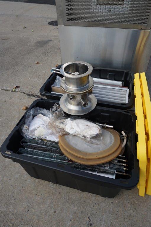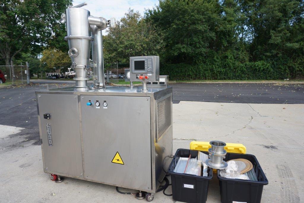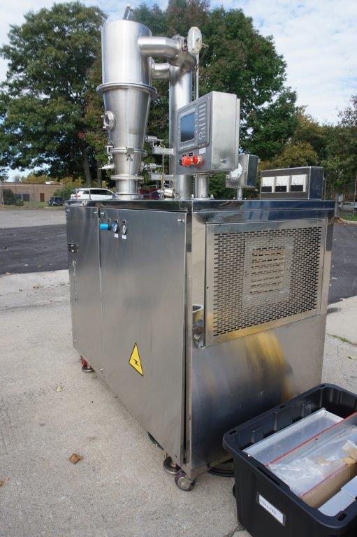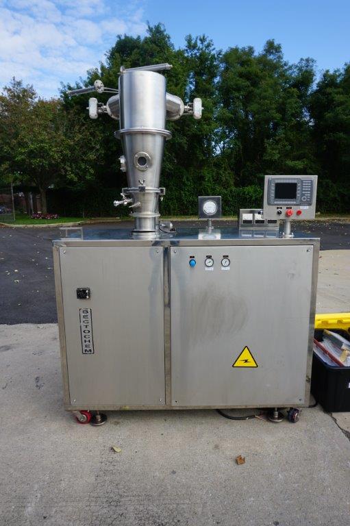1-Used Bectochem Pharmaceutical Lab Fluid Bed Dryer,  Type FBP, Serial Number 10112-8-3.  This GMP lab dryer is constructed of Type 316L Stainless Steel and is on casters for portability.  (Stock# L1404)