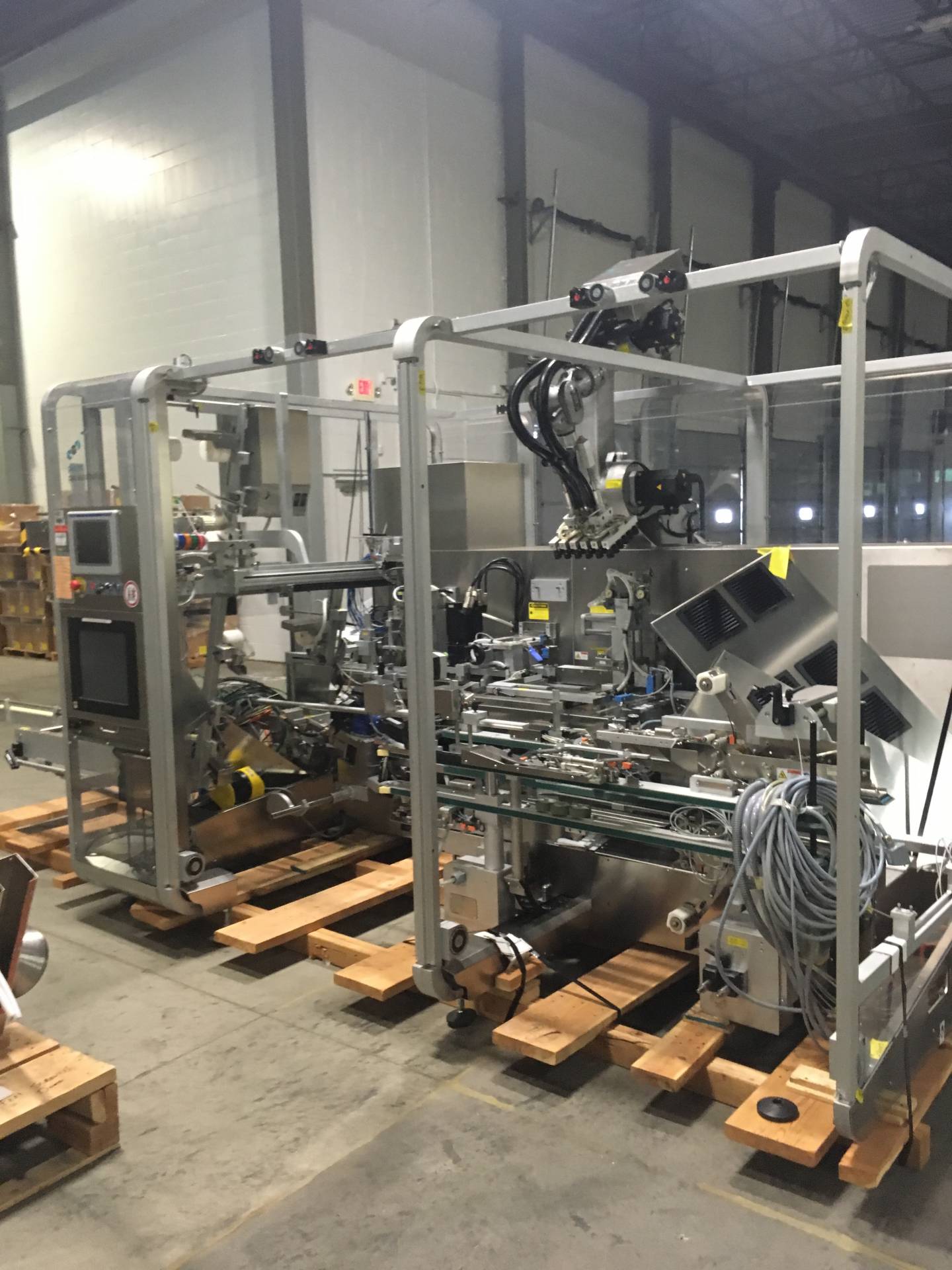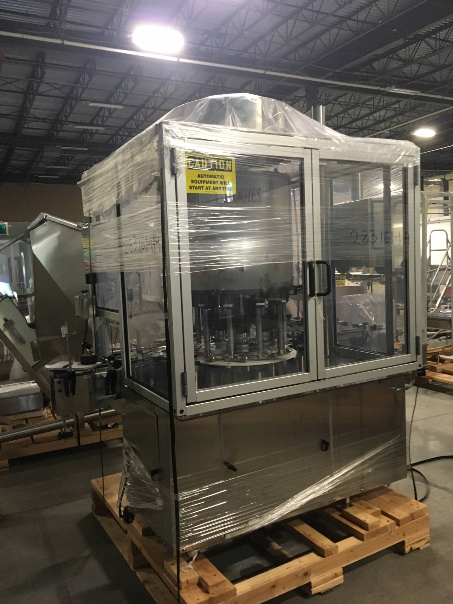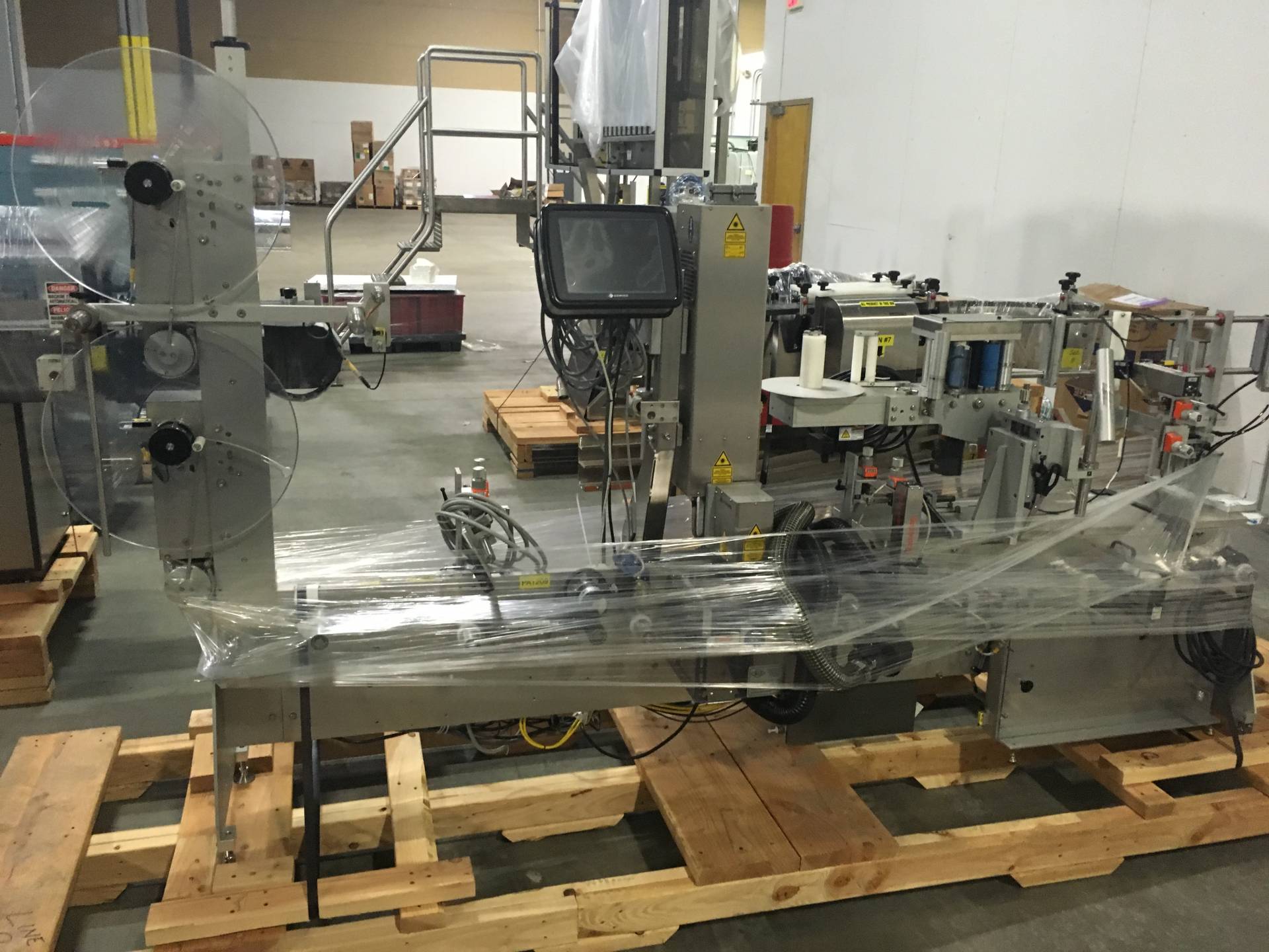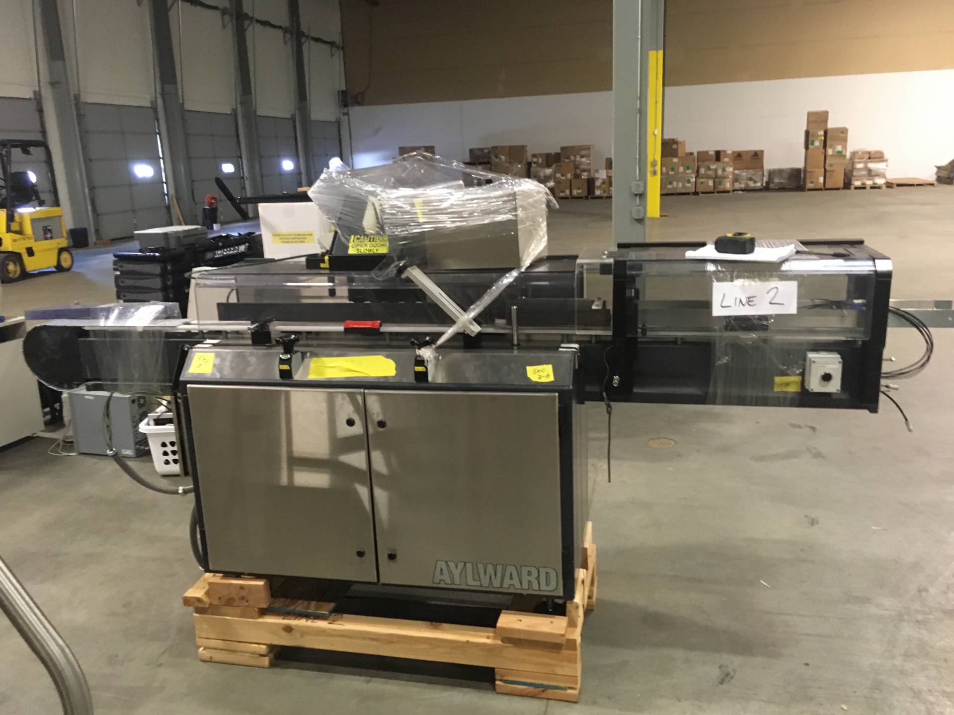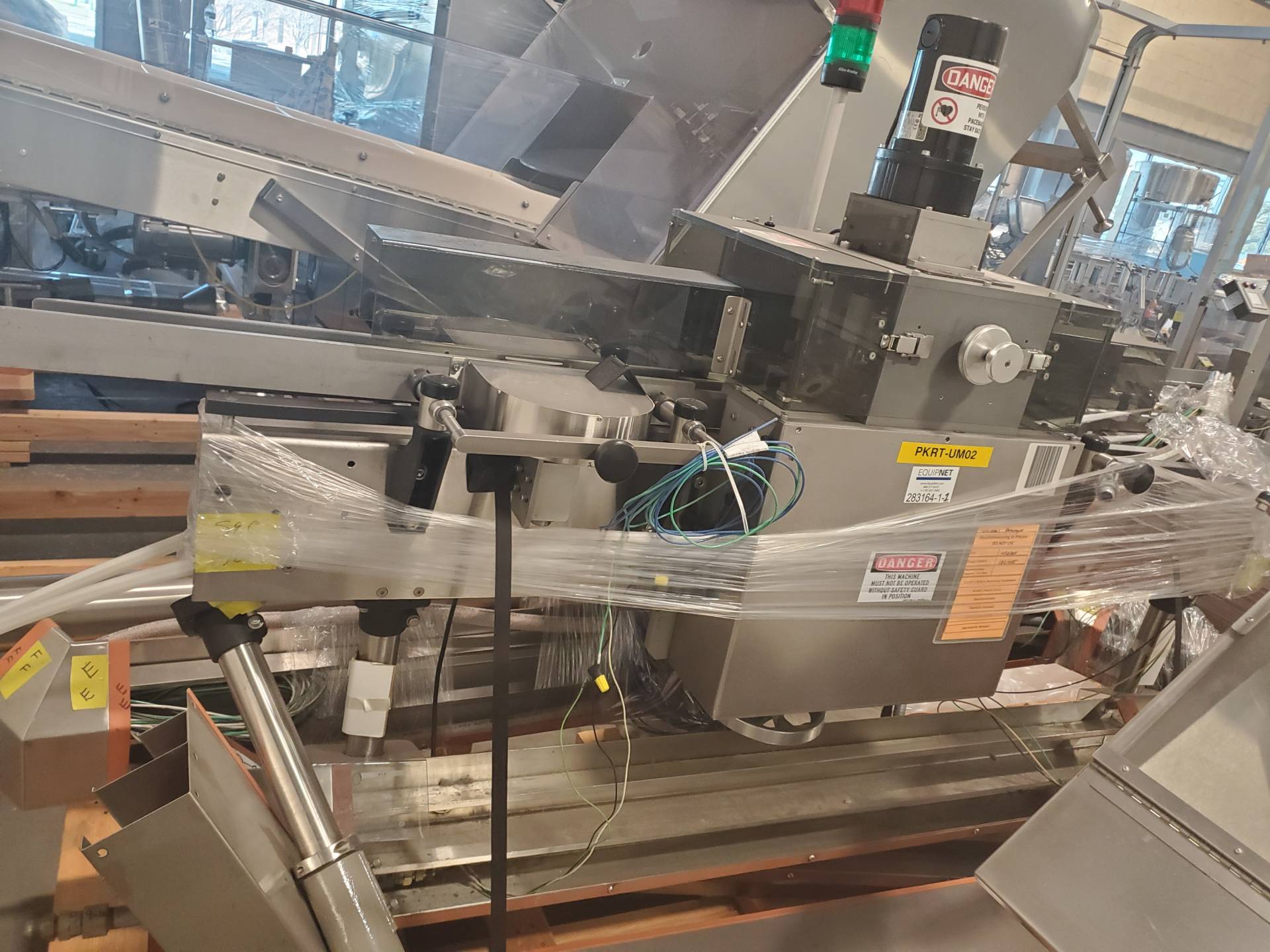 1-Used High Speed Tablet/Capsule Bottling Line. Capable of packaging up to 300 bottles per minute, this line was last running 90cc and 120cc square bottles and 38mm diameter CR Screw Caps. Line begins with Omega 4D-RP2-12 plastic bottle unscrambler and continues with Aylward ACT-520DL counter, Lakso 300 dual head cottoner, TCG 10 Head rotary screw capping machine, Enercon Superseal Max induction sealer, Weiler PRL-1500 rotary labeler with leaflet feeder/outserter and Universal 4 quill inline retorquer. Also equipped with Pester automatic case packer with robotic palletizer, Pester case labeler and stainless steel bi-directional accumulation table. Also with miscellaneous conveyors, elevators, feeders, etc. (Stock #L1412)