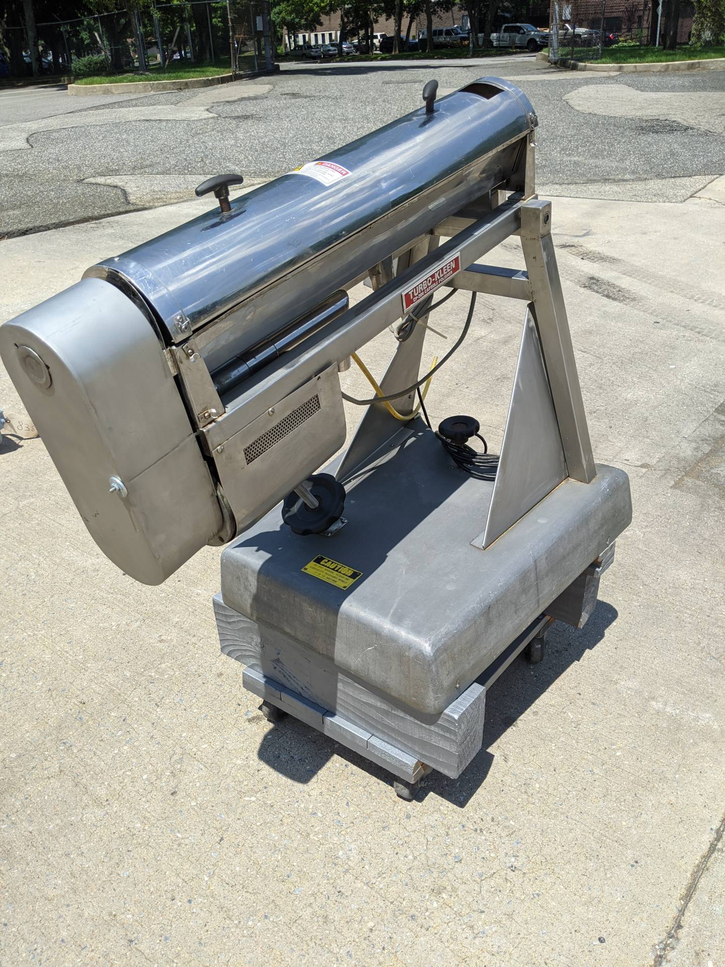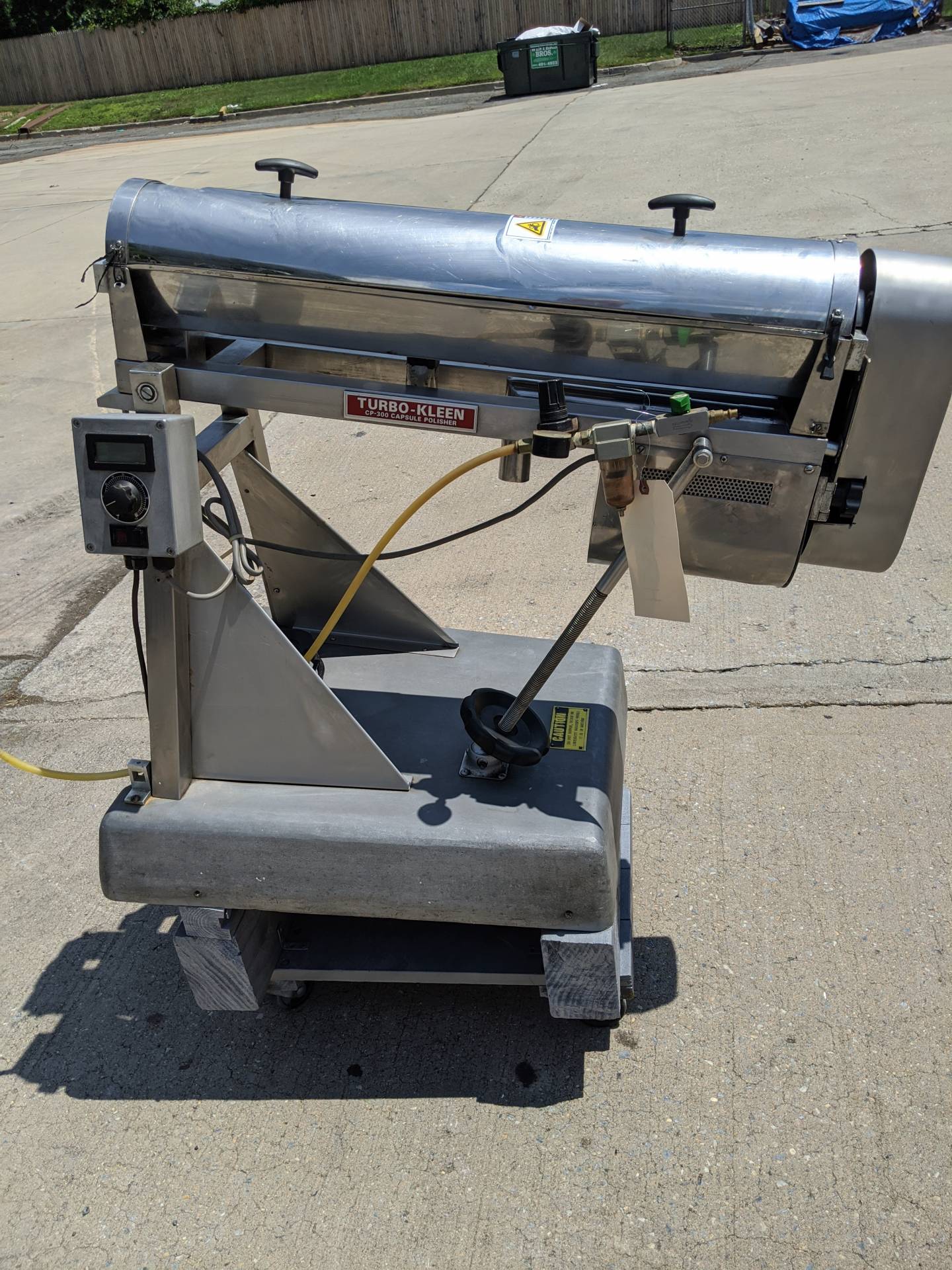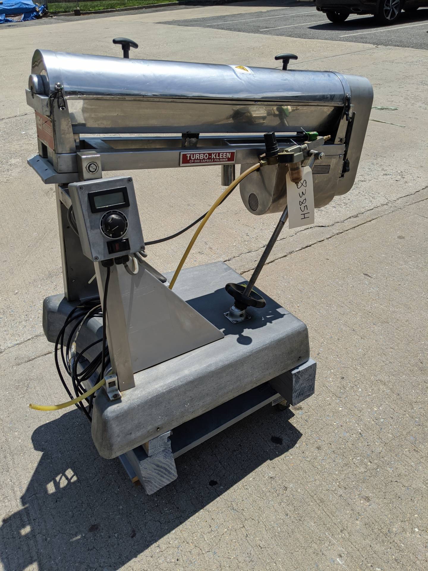1-Used Key Industries “Turbo-Kleen” Model CP-300 Capsule Polisher, Serial Number J-894. Mounted on stand, machine has single phase electrics. (Stock# 8385H)