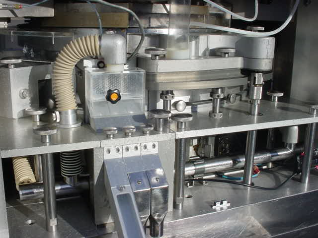 1-Used hata 55 station high speed rotary tablet press model ht-8p55-du/i, s/n 79. Equipped with two (2) filling stations, this tablet press has keyed heads and is equipped with digital control panel with video display and pressure controls for both filling stations. Supplied with two (2) hata model tc-e2 tablet dedusters and numerous other features are included.