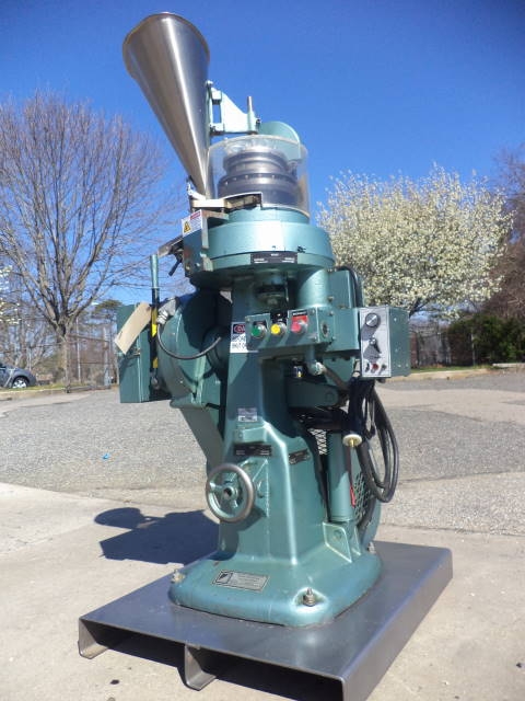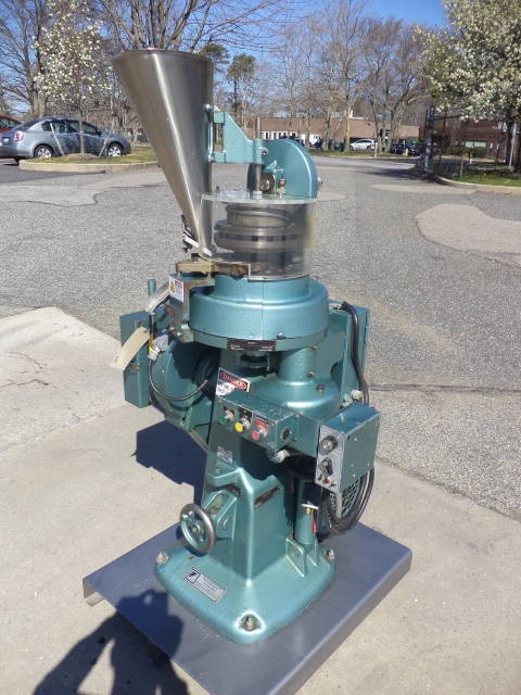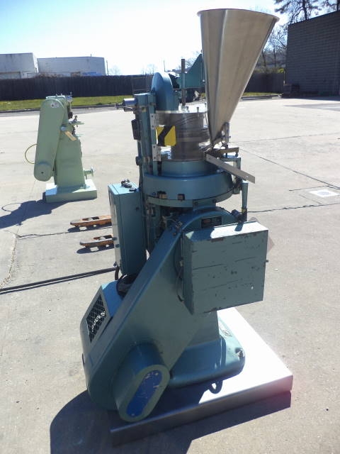 1-Used Vector Corporation “Colton” Model 2216 16 Station Rotary Tablet Press, S/N 41217. Rated up to 800 tablets per minute, Press capable of producing tablets up to approx. 5/8 in. diameter maximum and depth of cell 3/4 in. With stainless steel hopper, maximum pressure 6,000 PSI. Equipped with 1HP main drive motor. There is separate control box for variable speed operation. (Stock #7993B)