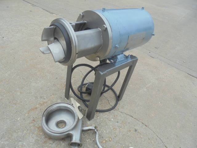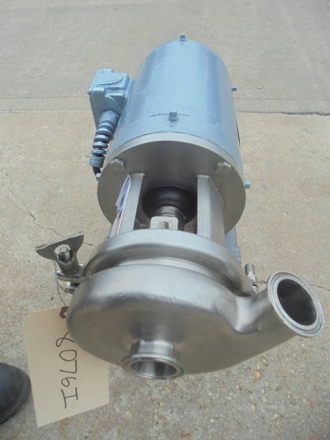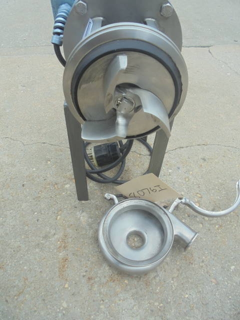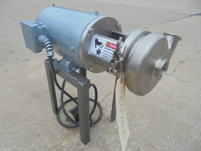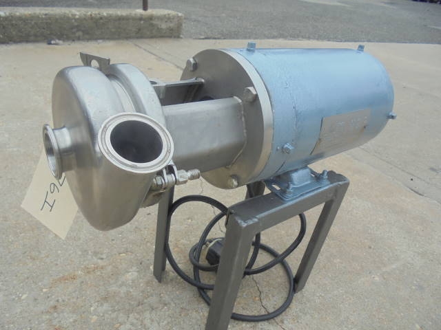 1-Used Stainless Steel Sanitary Centrifugal Pump. Equipped with approx. 1-1/2 in. X 1-1/4 in. Tri- Clamp Ports. Pump driven by 1 HP 3/60/208-230-460 volt motor. Mounted on short legs. (Stock #8076i)