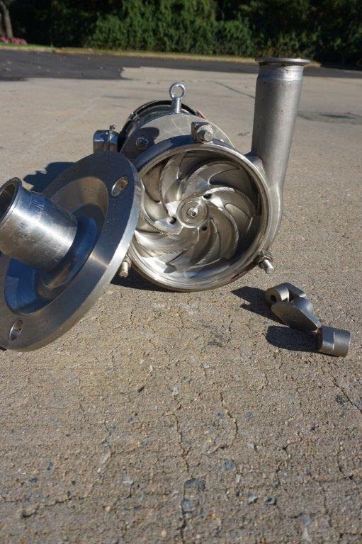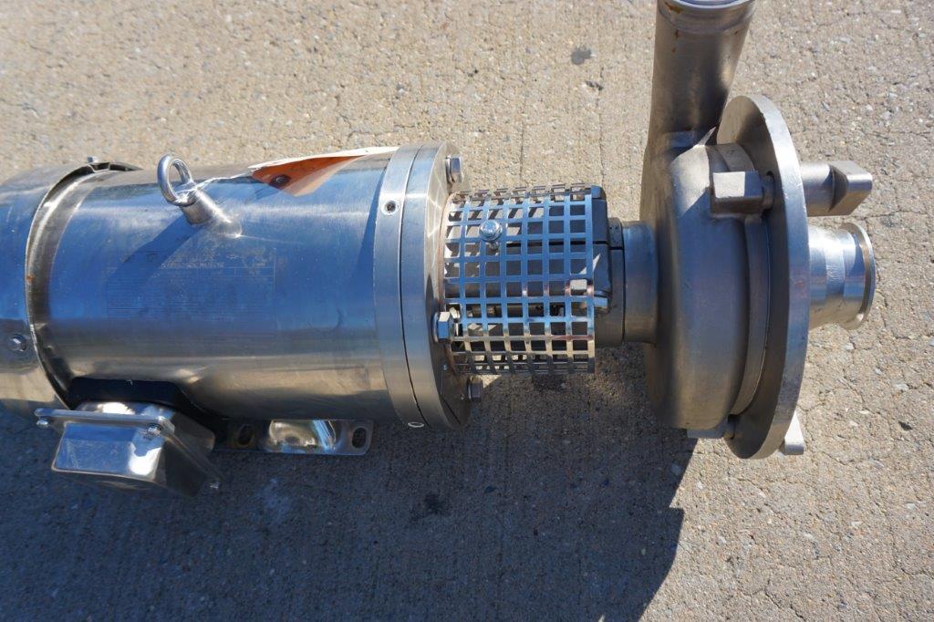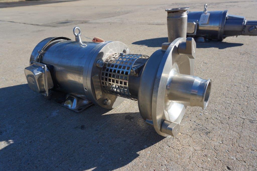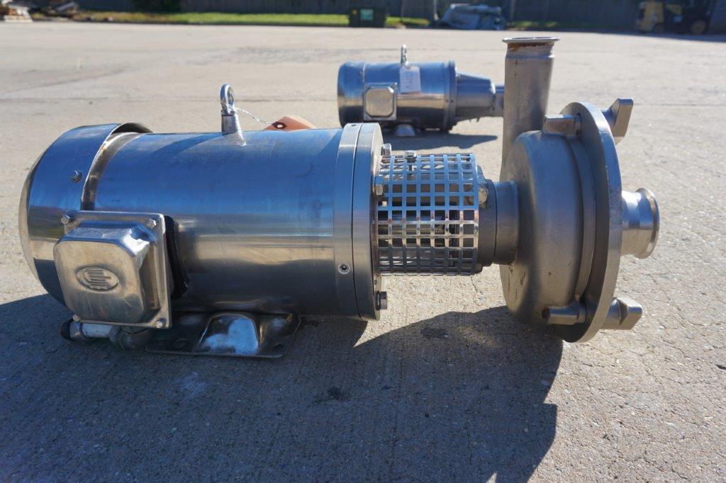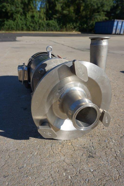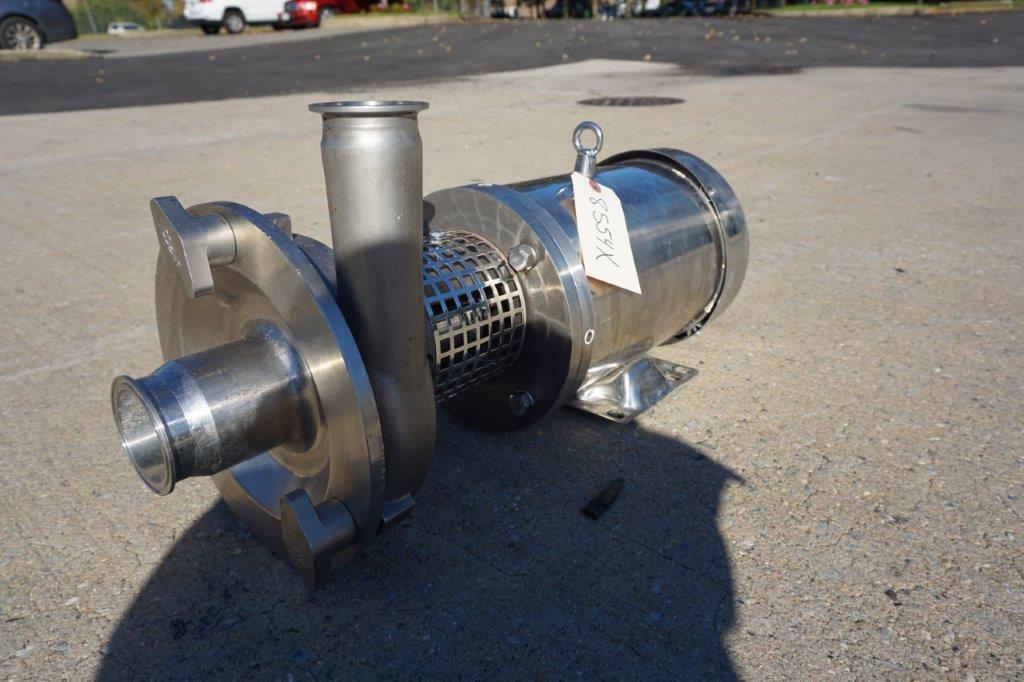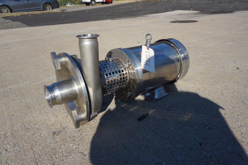 1- Used Ampco Stainless Steel Centrifugal Pump. Equipped with approx. 3 In. diameter inlet and 2 In. outlet, tri-clamp post. Pump is driven by 5 HP 3 phase, 60 cycle, 208/230-460 volt stainless steel washdown motor. Equipped with approx. 6.5 In. diameter impeller. (Stock # 8554X)