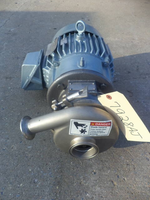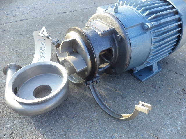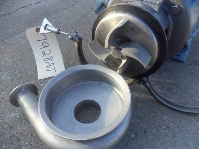 1-Used Crepaco Stainless Steel Sanitary Centrifugal Pump, Model 16V-82. Equipped with approx. 3 in. diameter inlet and 2 in. diameter outlet ports, pump is driven by 7.5 HP, 3/60/230-460 Volt Motor. (Stock# 7928AJ)