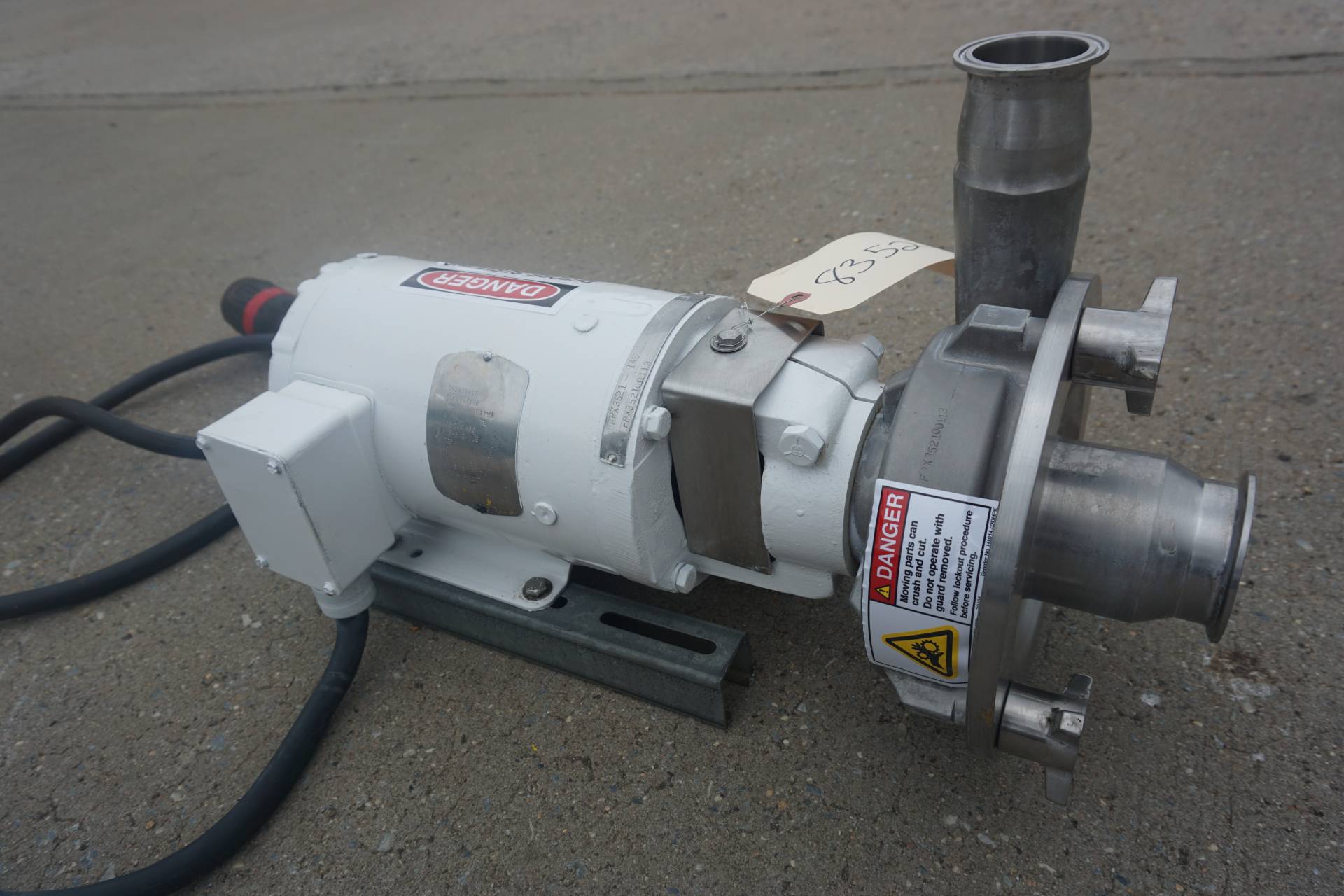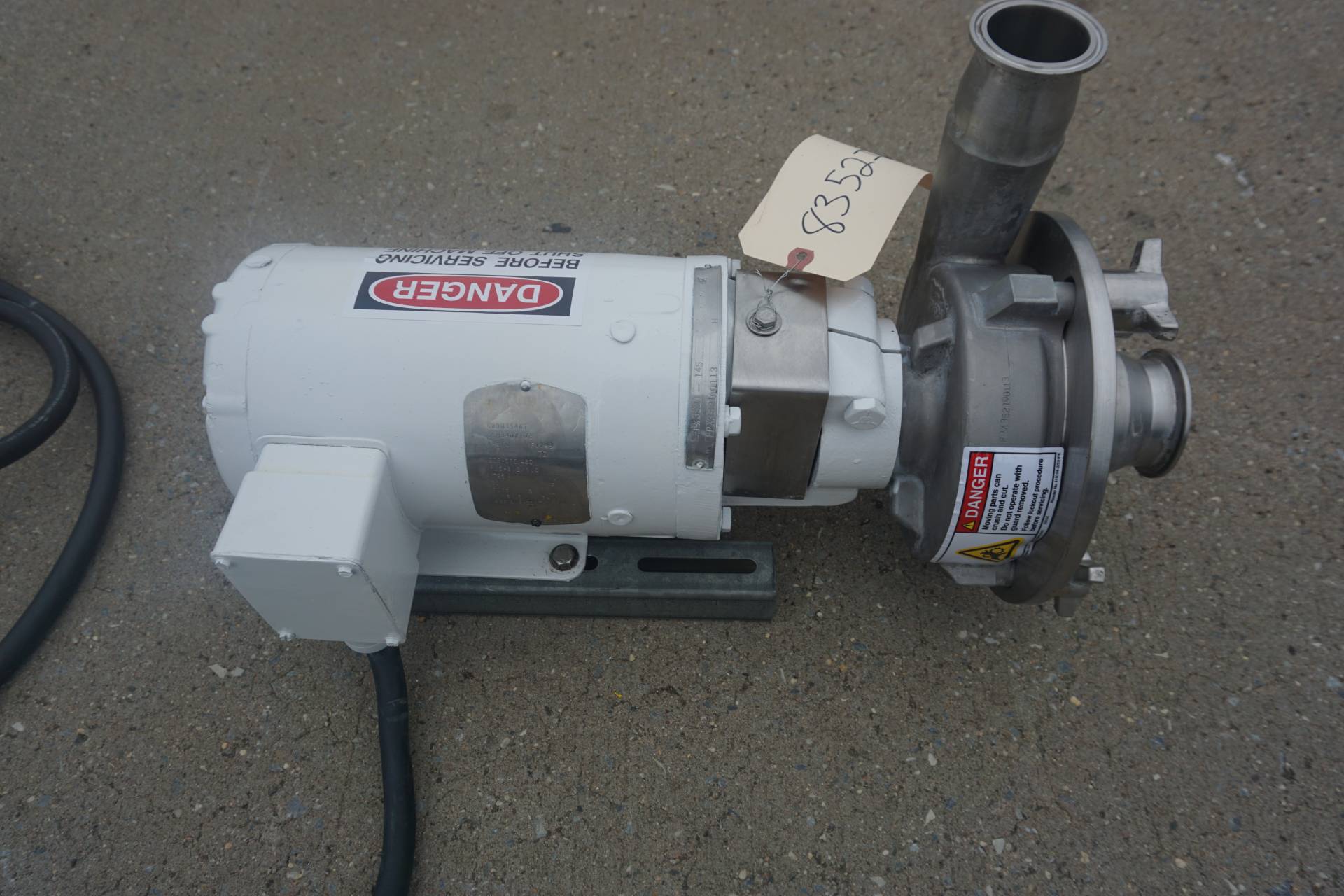 1-Used Fristam Model FPX3521-145 Stainless Steel Centrifugal Pump, Serial Number FPX352100113.  Equipped with approximately 2-1/2 In. diameter and 2 In. diameter inlet and outlet ports. Driven by 1 HP, 3/60/208-230/460 Volt motor. Last used in food manufacturing facility. (Stock#8352i)
