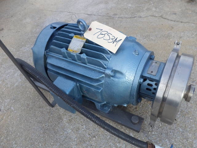 1-Used Waukesha Model 2085LV Stainless Steel  Sanitary Centrifugal Pump, S/N 115492.  Equipped with approx. 2 in. X 1-1/2 in. ports.  Pump driven by 20 HP 3/60/208-230-460 volt motor.  (Stock #7853M)