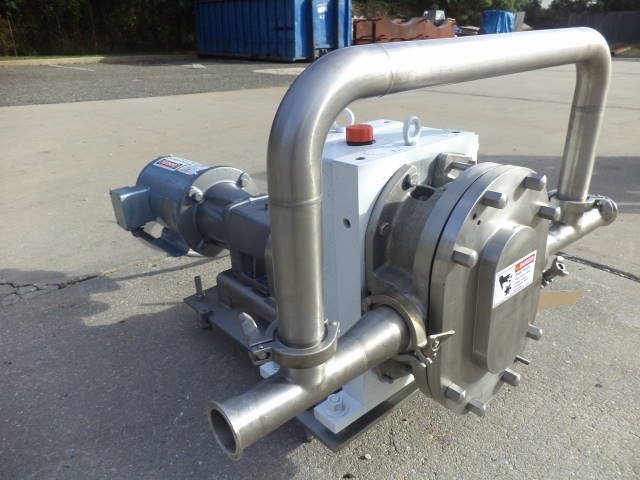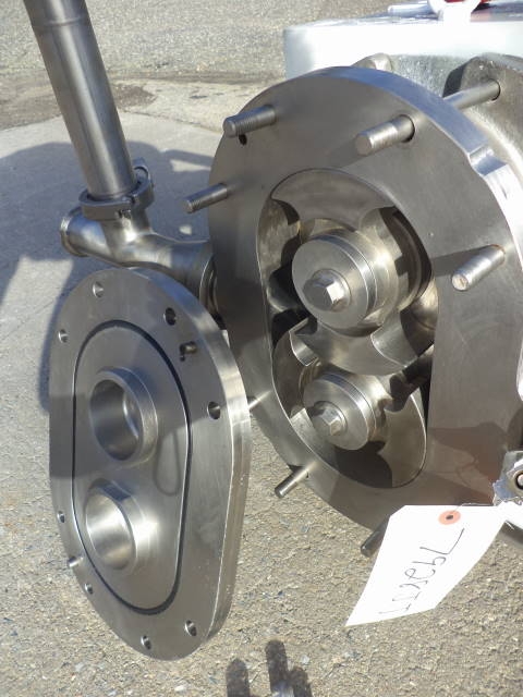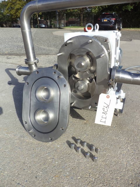 1-Used Fristam Model FKL-75 Stainless Steel Positive Displacement Lobe Pump, Serial Number FKL750303039. Equipped with approximately 2-1/2 in. diameter inlet and outlet ports, pump is driven by 3.4/1.7 HP 3/60/230-460 volt two speed motor. (Stock# 7928JJ)