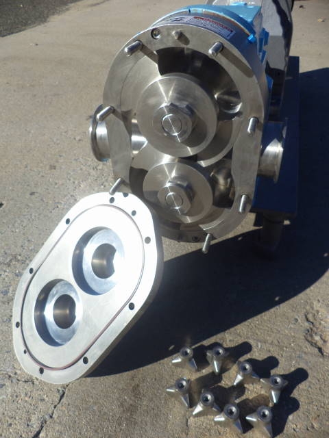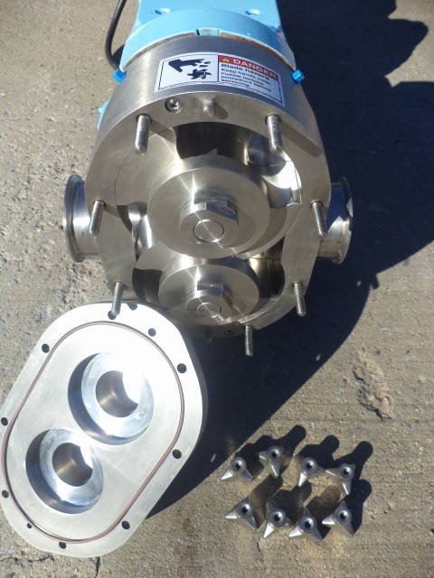 1-Used SPX/WAUKESHA CHERRY BURRELL, Model 130U1 Type 316L Stainless Steel Positive Displacement Pump, S/N 2868285-R2-6. Re-manufactured in July, 2013, Pump has approx. 3 in. diameter Tri-Clamp inlet and outlet ports. On base, Pump driven by 10 HP 3/60/230-460 volt motor. (Stock #7934E)