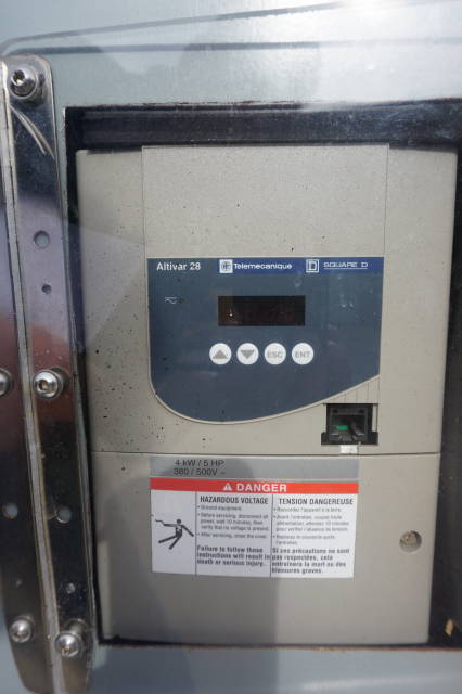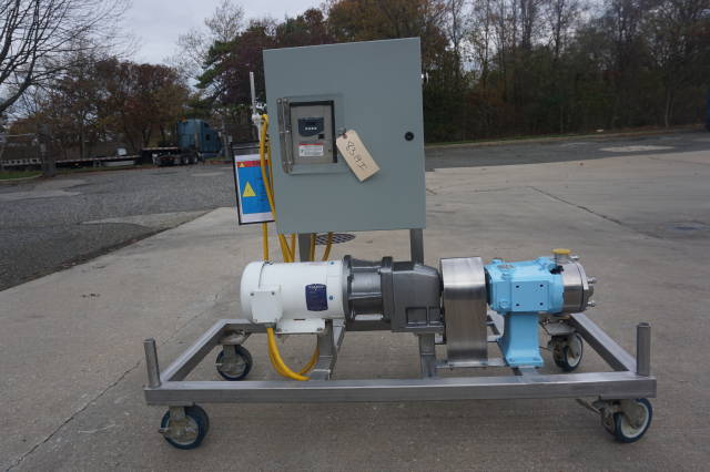 1-Pre-Owned Waukesha Model 030U2 Stainless Steel Positive Displacement Pump, S/N 413281-06. Equipped with approx. 1-1/2 in. diameter inlet and outlet ports. Pump driven by 5 HP 3/60/208-230-460 volt motor. Mounted on stainless steel base with casters, Pump has Altivar 28 Adjustable Speed Controller. (Stock #8319i)