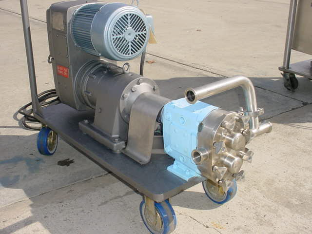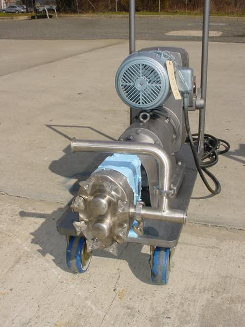 1-USED WAUKESHA SIZE 30 STAINLESS STEEL POSITIVE DISPLACEMENT PUMP, S/N 119729. EQUIPPED WITH 1-1/2" DIAMETER INLET AND OUTLET PORTS. DRIVEN BY 5 HP 3/60/208-230-460 VOLT VARIABLE SPEED DRIVE. MOUNTED ON PORTABLE BASE WITH CASTERS.