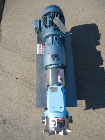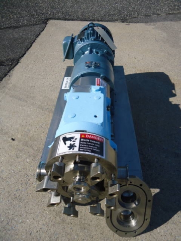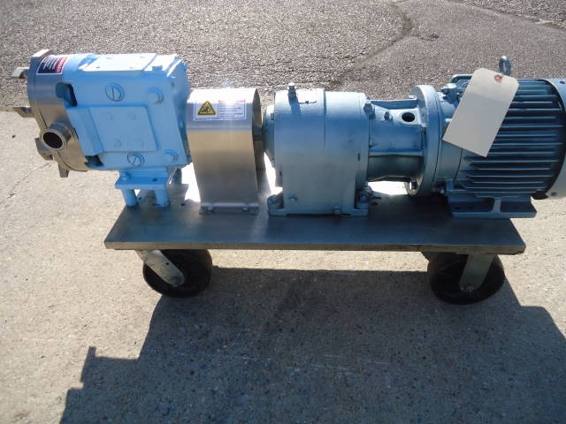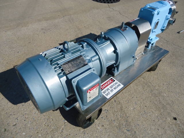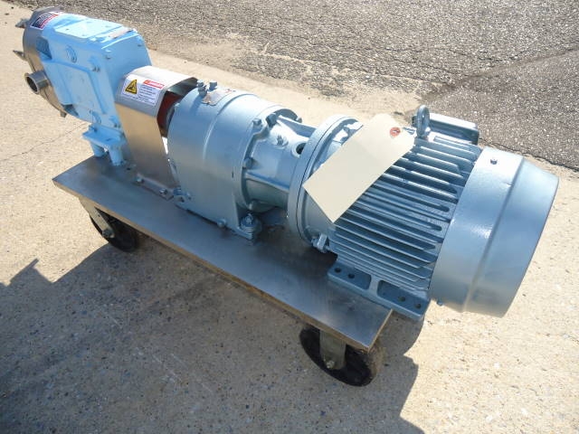 1-USED WAUKESHA MODEL 30 STAINLESS STEEL POSITIVE DISPLACEMENT PUMP, S/N 16133095. EQUIPPED WITH APPROX. 1-1/2 IN. DIAMETER INLET AND OUTLET TRI-CLAMP PORTS. PUMP DRIVEN BY 3 HP, 3/60/230-460 VOLT MOTOR. ON PORTABLE STAINLESS STEEL BASE WITH CASTERS. (STOCK # 7511B)