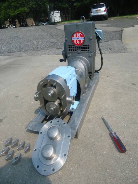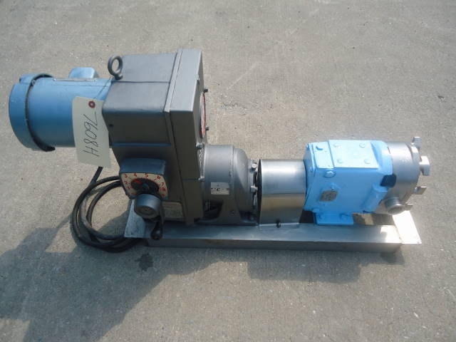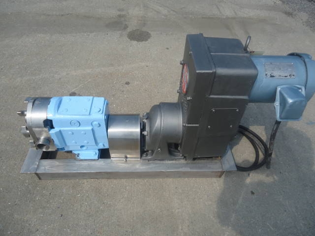 1-USED WAUKESHA SIZE 30 STAINLESS STEEL POSITIVE DISPLACEMENT PUMP, S/N 83451-SS. EQUIPPED WITH APPROX. 1-1/2 IN. DIAMETER TRI-CLAMP INLET AND OUTLET PORTS. PUMP ON BASE WITH 2 HP 3/60/230-460 VOLT VARIABLE SPEED DRIVE. (STOCK # 7608H)