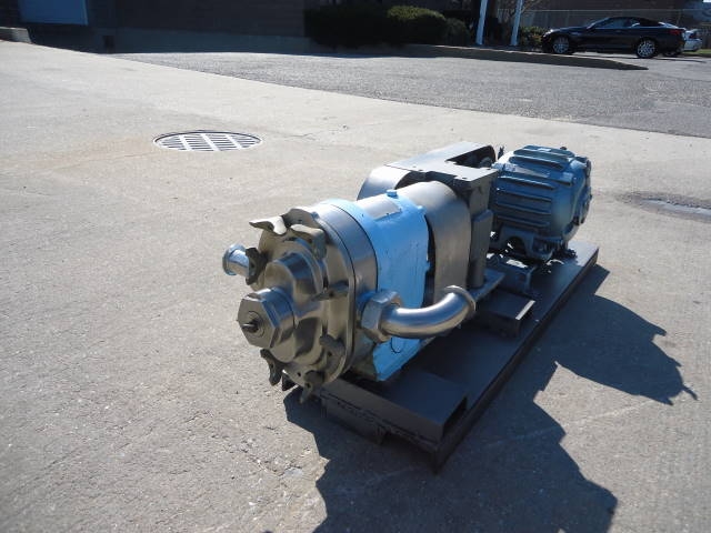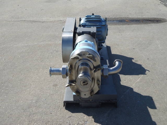 1-USED WAUKESHA SIZE 25 STAINLESS STEEL POSITIVE DISPLACEMENT PUMP, S/N DO5471455. EQUIPPED WITH APPROX. 1-1/2 IN. DIAMETER INLET AND OUTLET PORTS. PUMP DRIVEN BY 1 HP 3/60/208-220-440 VOLT MOTOR. (STOCK # 7562i)