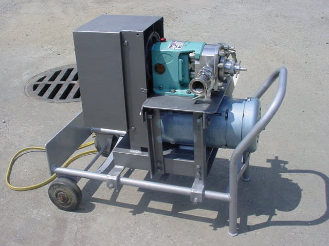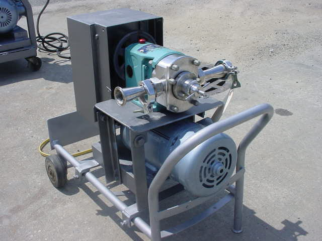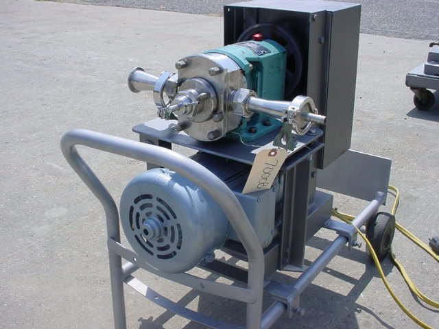 1-Used werner pump company type 316 stainless steel positive displacement pump, s/n b-72318. Equipped with approx. 1-1/4″ diameter inlet and outlet ports, pump mounted on portable stand with casters and driven by 1 hp single phase electric motor. Equipped with scr motor control for variable speed operation. (stock# 7654c)