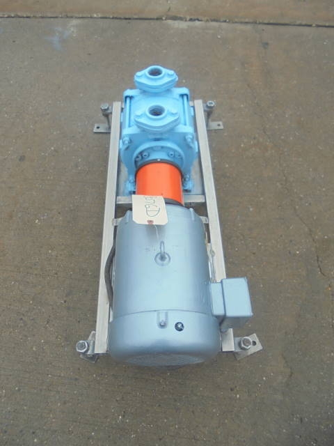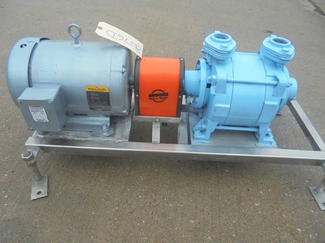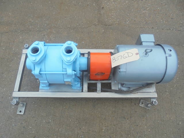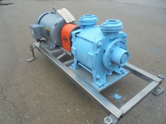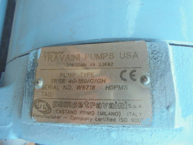 1-Used Travaini Type 40-150/C/GH Vacuum Pump, Serial Number W6718. On base, pump is driven by 7.5 HP 3/60/208-230/460 volt motor. (Stock #8076D)