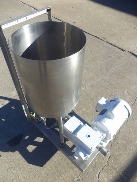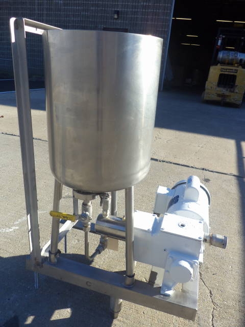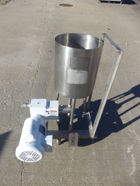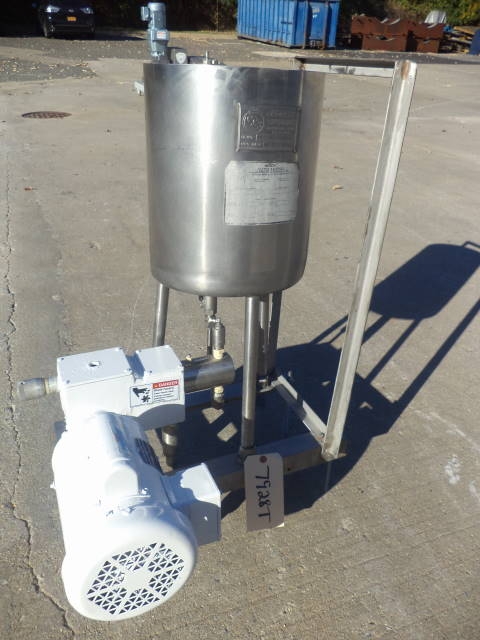 1-Used 7 Gallon Process Systems Stainless Steel Vertical Tank. Dimensions approx. 12 in. diameter X 15 in. high. Mounted on stainless steel base with Milton Roy Model 15CBM4BRCFSE Proportioning Pump driven by .5 HP single phase, 60 cycle, 115-230 volt motor. (Stock #7928T)