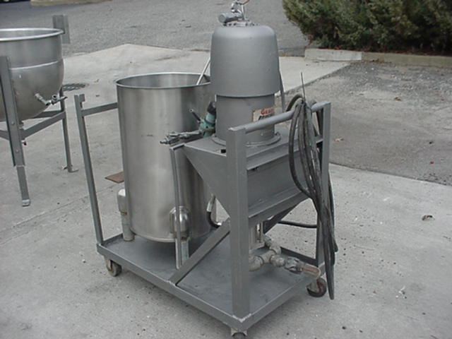 1-Used graco “bulldog series” power-flo air operated drum pump. Pump model 206797, air motor model 204640. Mounted on 27″ wide x 44″ long portable cart. There is also an approx. 30 gallon stainless steel tank mounted on cart as well.