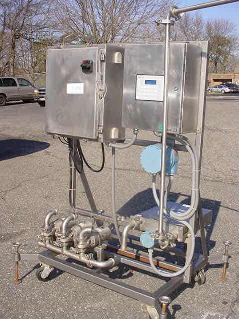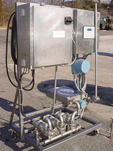 1-USED GSI AUTOMATION 3-INGREDIENT METERING/BLENDING SYSTEM. WITH MICRO-MOTION MMI-240 DIGITAL CONTROL PANEL, SYSTEM HAS LEESON SPEEDMASTER VARIABLE SPEED CONTROL. ELECTRICS: 3/60/230 VOLT. WITH STAINLESS STEEL CONTACT PARTS, LAST USED IN THE PRODUCTION OF MAYONNAISE.