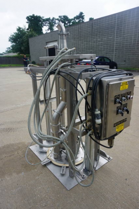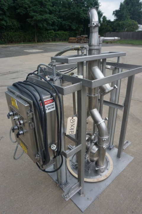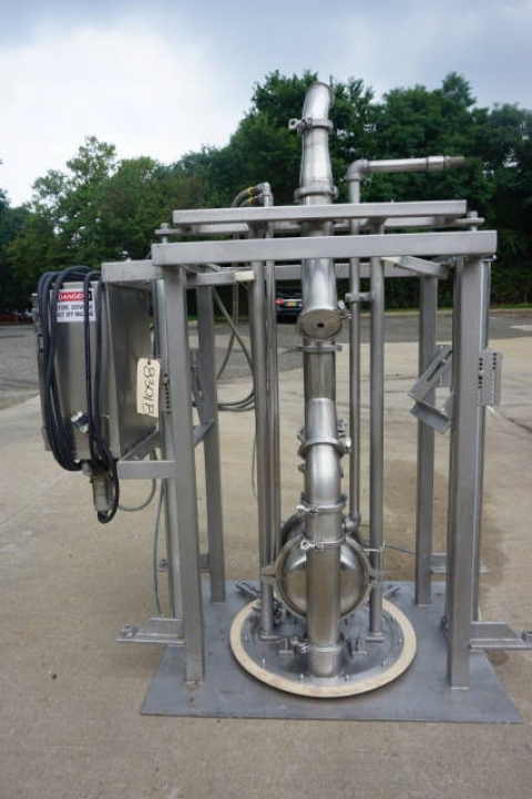 1-Used Murzan Model DUS-10M Stainless Steel Portable Drum Unloading System, Serial Number D-22852. Equipped with stainless steel control panel, system features 4 In. positive displacement pump and is on casters for portability. (Stock #8301B)