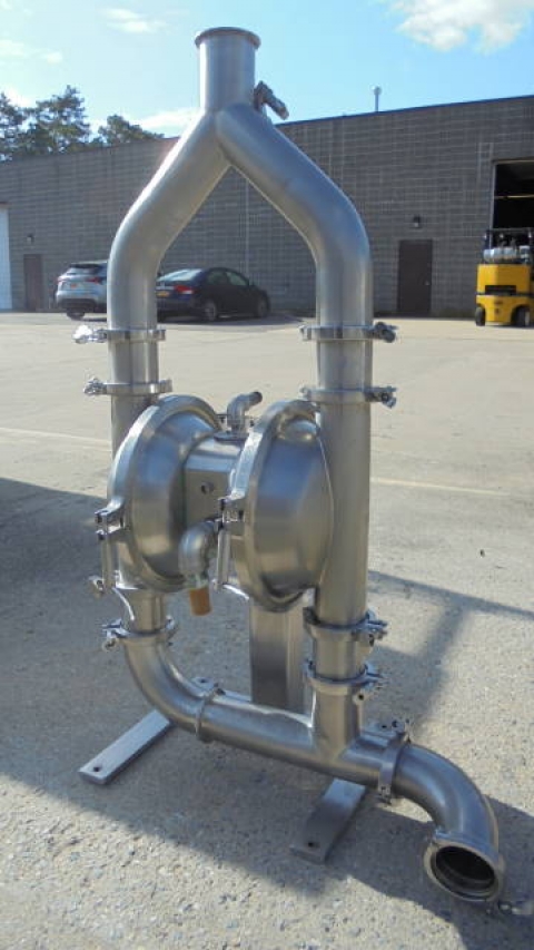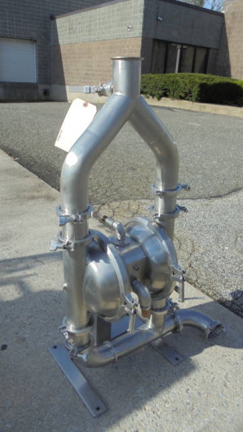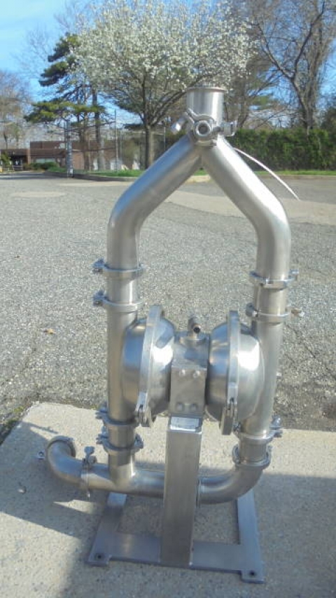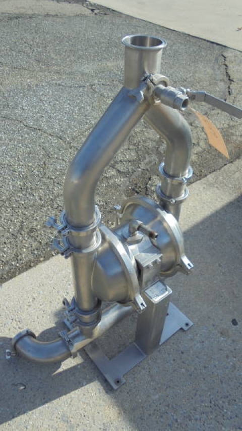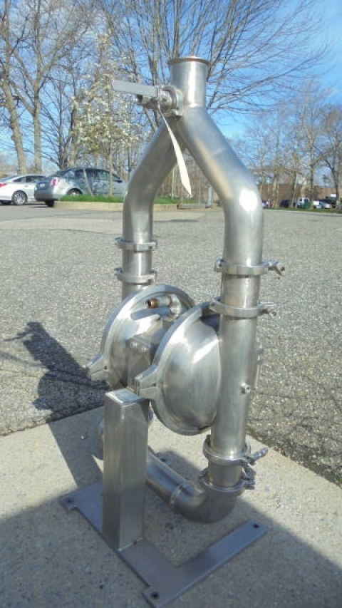 1-Used Murzan Model PI.50.SL Stainless Steel Air Operated Double Diaphragm Pump, S/N 97012974.  Equipped with approximately 3 In. diameter inlet and outlet, pump was last used in food processing manufacturing. (Stock #8189)