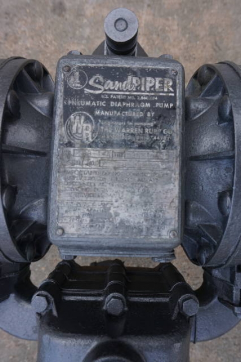 1-Used Sandpiper Air Operated Diaphragm Pump, Model SB-1-A, Type SN-1-8, Serial Number 89939. Equipped with approx. 1 In. diameter inlet and outlet ports. (Stock #8175ZZ)