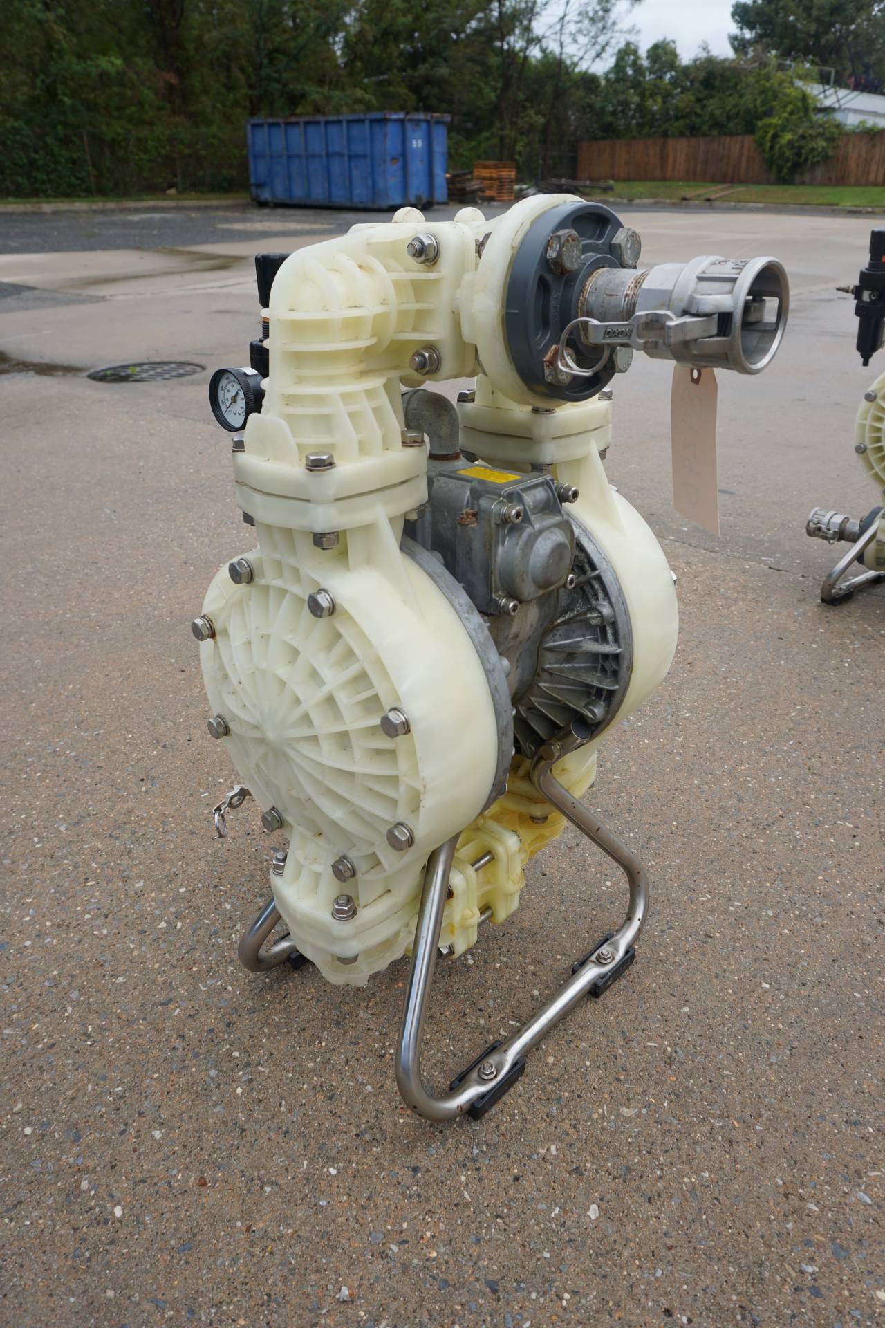 1-Used Yamada Model NDP40BPS Air Operated Double Diaphragm Pump, S/N 390852. This CE pump is equipped with approximately 1-1/2 In. diameter inlet and outlet ports. (Stock# 8424D)