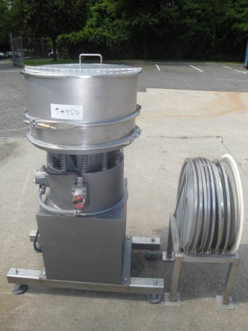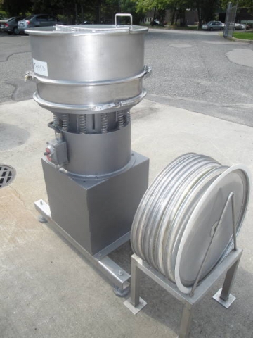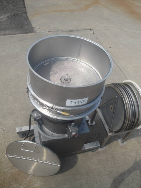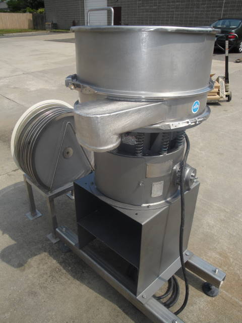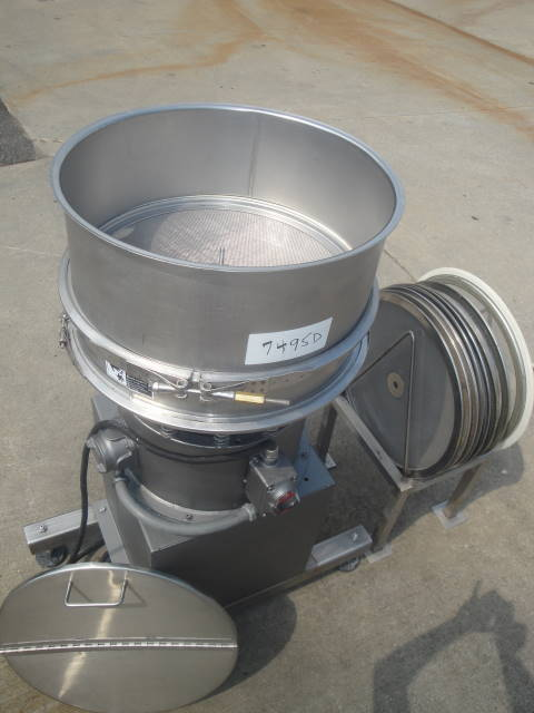1-Used sweco approx. 24 inch diameter stainless steel vibratory screener/classifier/sifter, model ls24s44, s/n ls24-880-14. Mounted on stand, screener driven by 1/3 hp 3/60/220 volt motor. Extra screens available. (stock # 7495d)
