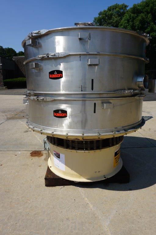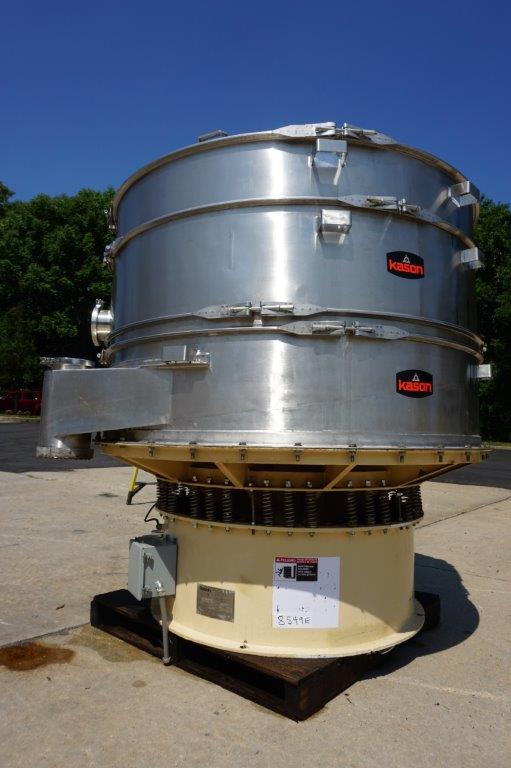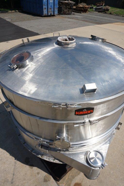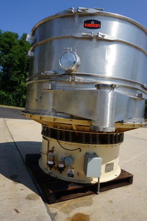 1-Used Kason 72 In. Diameter Stainless Steel Double Deck Screener, Model K72-2/1RC/SS, Job #K-87777. This vibratory screener has top lid and is driven by 5HP, 3/60/460 Volt motor. (Stock #8549E)